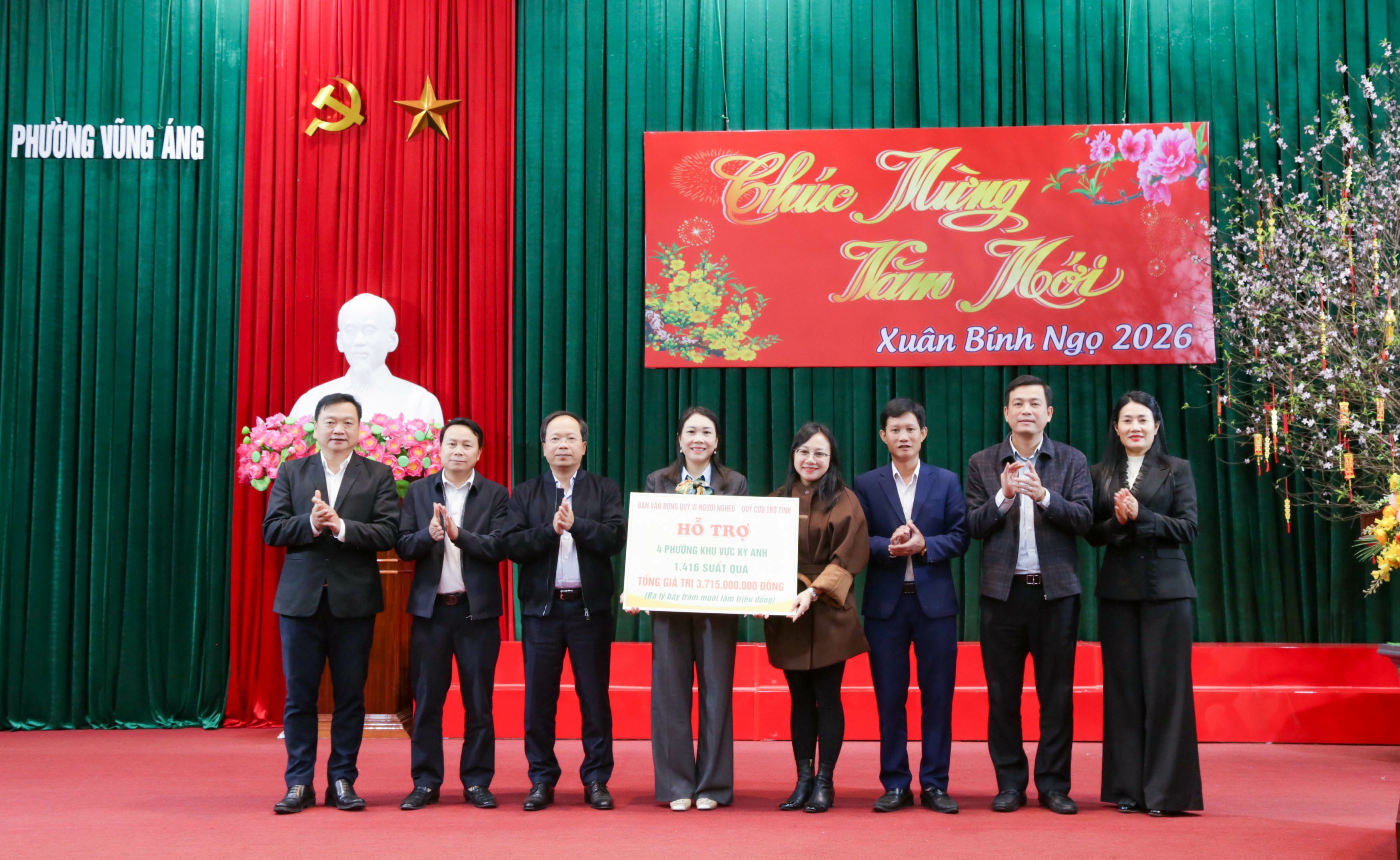 Cũng trong dịp Tết Nguyên đán Bính Ngọ 2026, Ban Vận động Quỹ “Vì người nghèo” và Quỹ Cứu trợ tỉnh đã hỗ trợ 1.416 suất quà với tổng trị giá 3 tỷ 715 triệu đồng cho Nhân dân tại 4 phường: Sông Trí, Hải Ninh, Hoành Sơn và Vũng Áng.