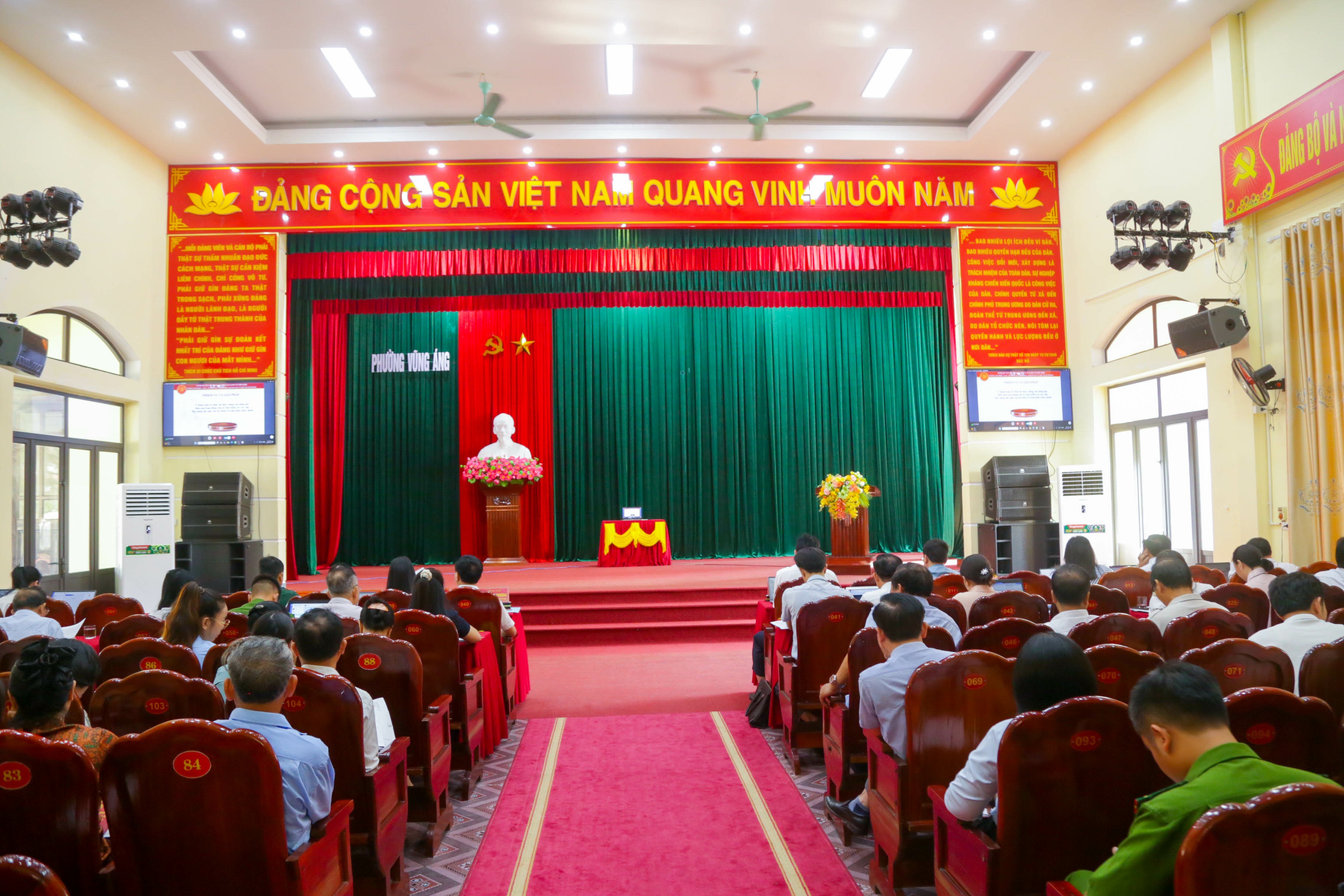 Tại điểm cầu phường Vũng Áng, các đồng chí Trần Xuân Phượng – Bí thư Đảng ủy, Chủ tịch HĐND phường và Đ/c Nguyễn Văn Hảo – Phó Bí thư Thường trực Đảng ủy chủ trì hội nghị.
