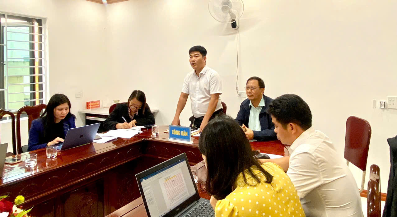Sau khi phòng Kinh tế, hạ tầng, đô thị báo cáo nội dung kiến nghị của bà Đỗ Thị Hoàn về việc tranh chấp đất giữa bà và ông Lê Anh Tuấn, đại diện 2 gia đình đã phát biểu quá trình tranh chấp đất đai xảy ra giữa 2 bên.