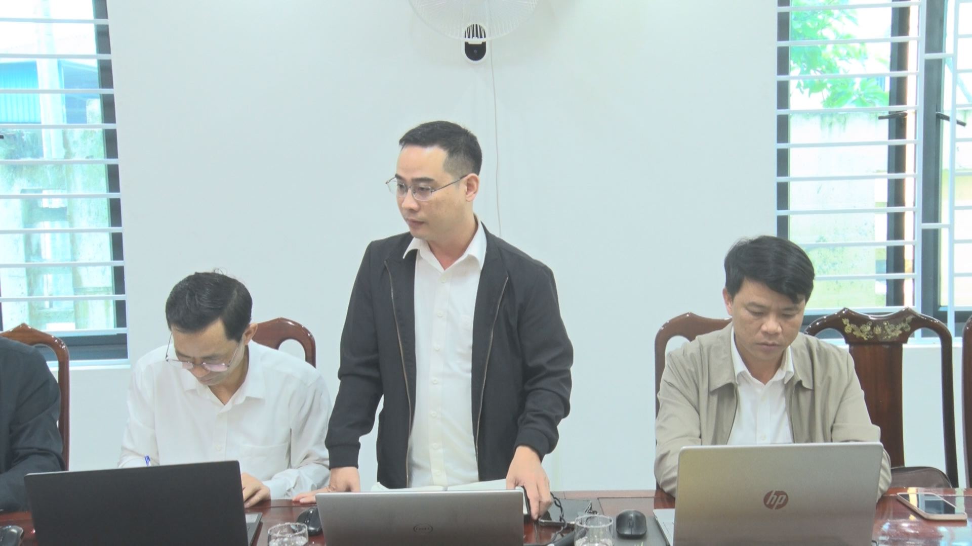 Đồng chí Nguyễn Tiến Đậu phòng kinh tế - Hạ tầng và đô thị báo cáo các nội dung