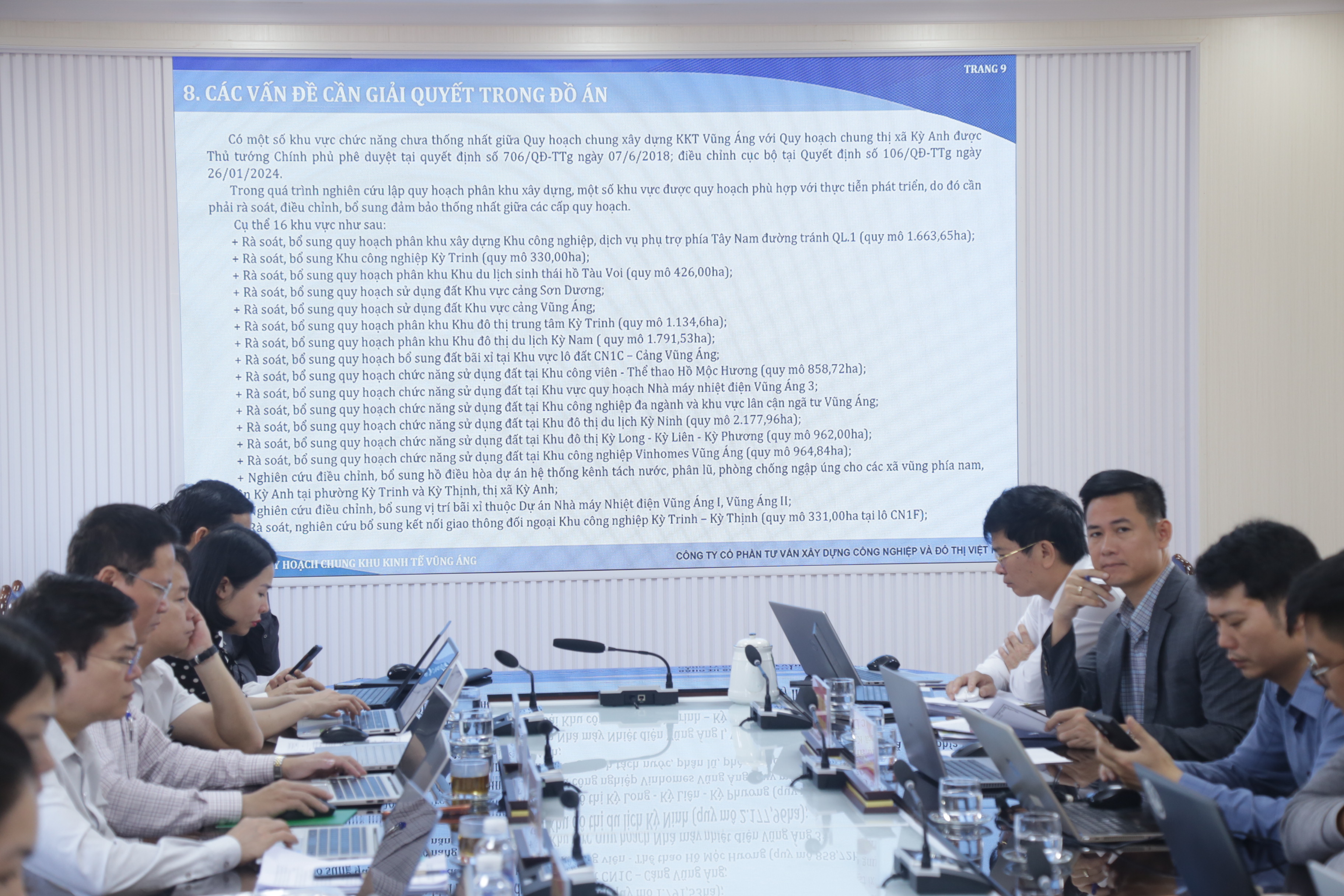 Tại hội nghị, các đại biểu đã nghe đơn vị tư vấn trình bày nội dung điều chỉnh, làm rõ một số điểm cập nhật, khắc phục những bất cập giữa quy hoạch đã được Thủ tướng Chính phủ phê duyệt với tình hình thực tiễn và định hướng phát triển KKT Vũng Áng hiện nay.