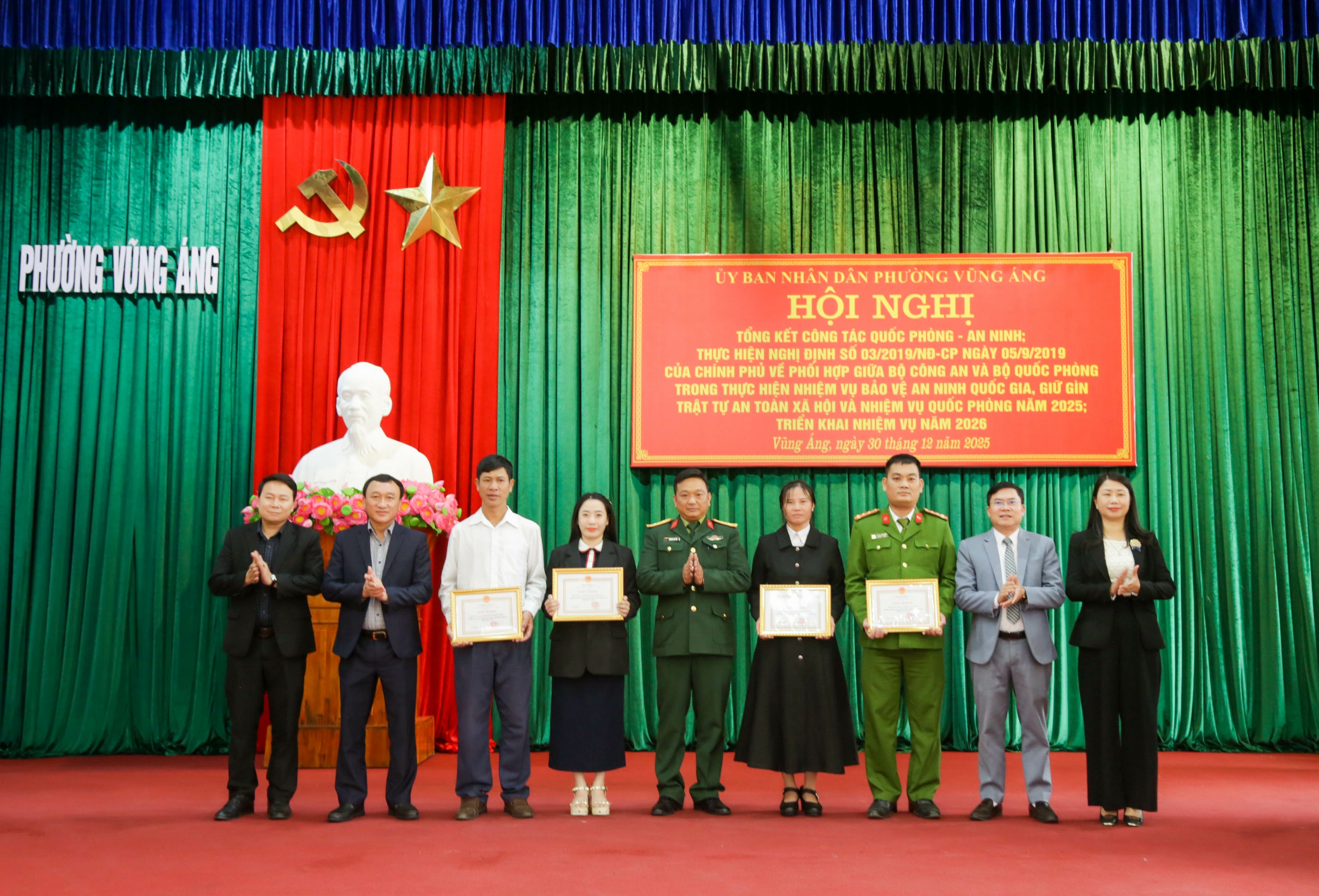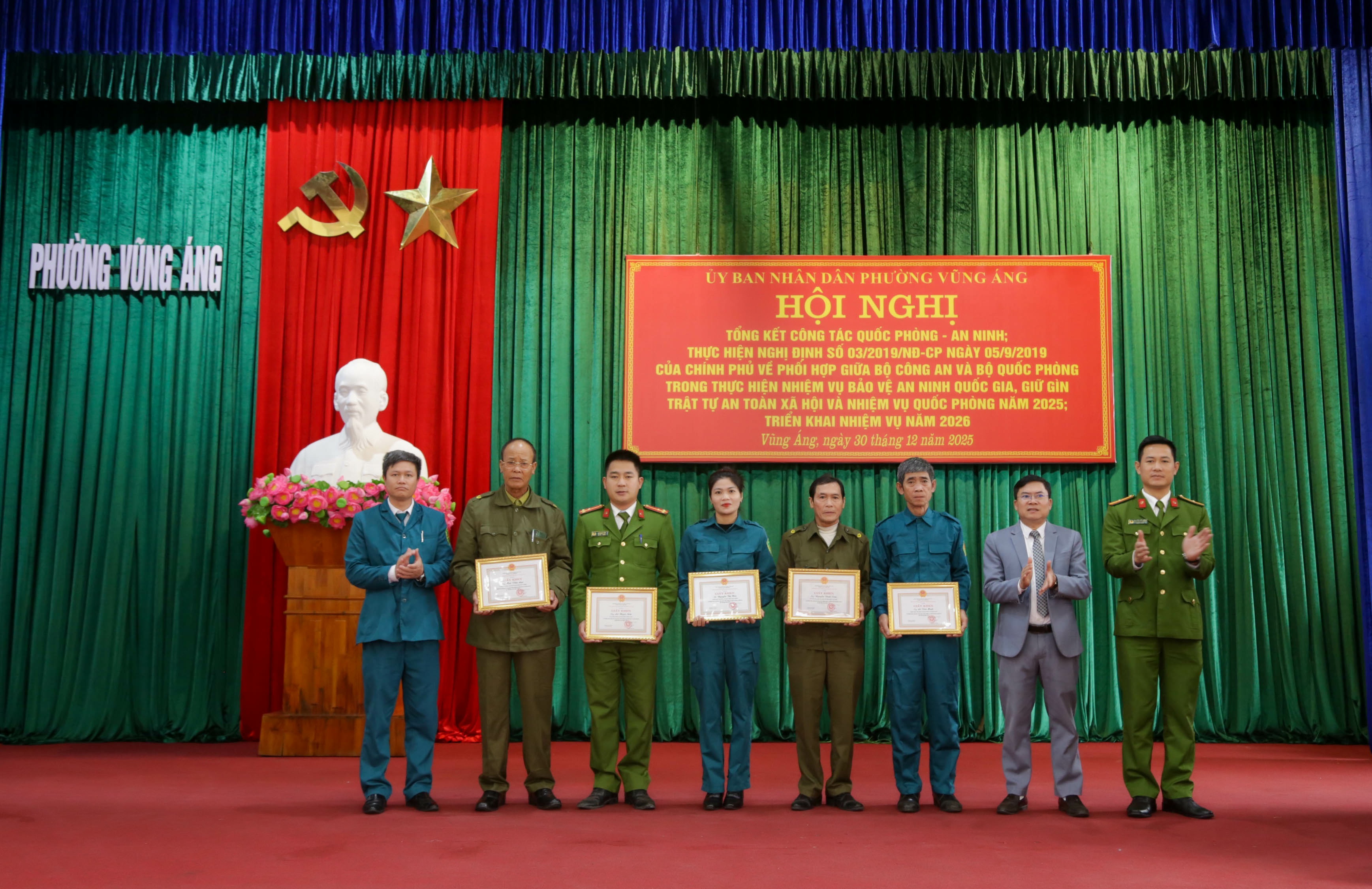Tại hội nghị đã khen thưởng 04 tập thể, 05 cá nhân xuất sắc trong công tác QP-AN năm 2025, ghi nhận tinh thần trách nhiệm, hiệu quả phối hợp, là động lực để hoàn thành tốt nhiệm vụ năm 2026.
