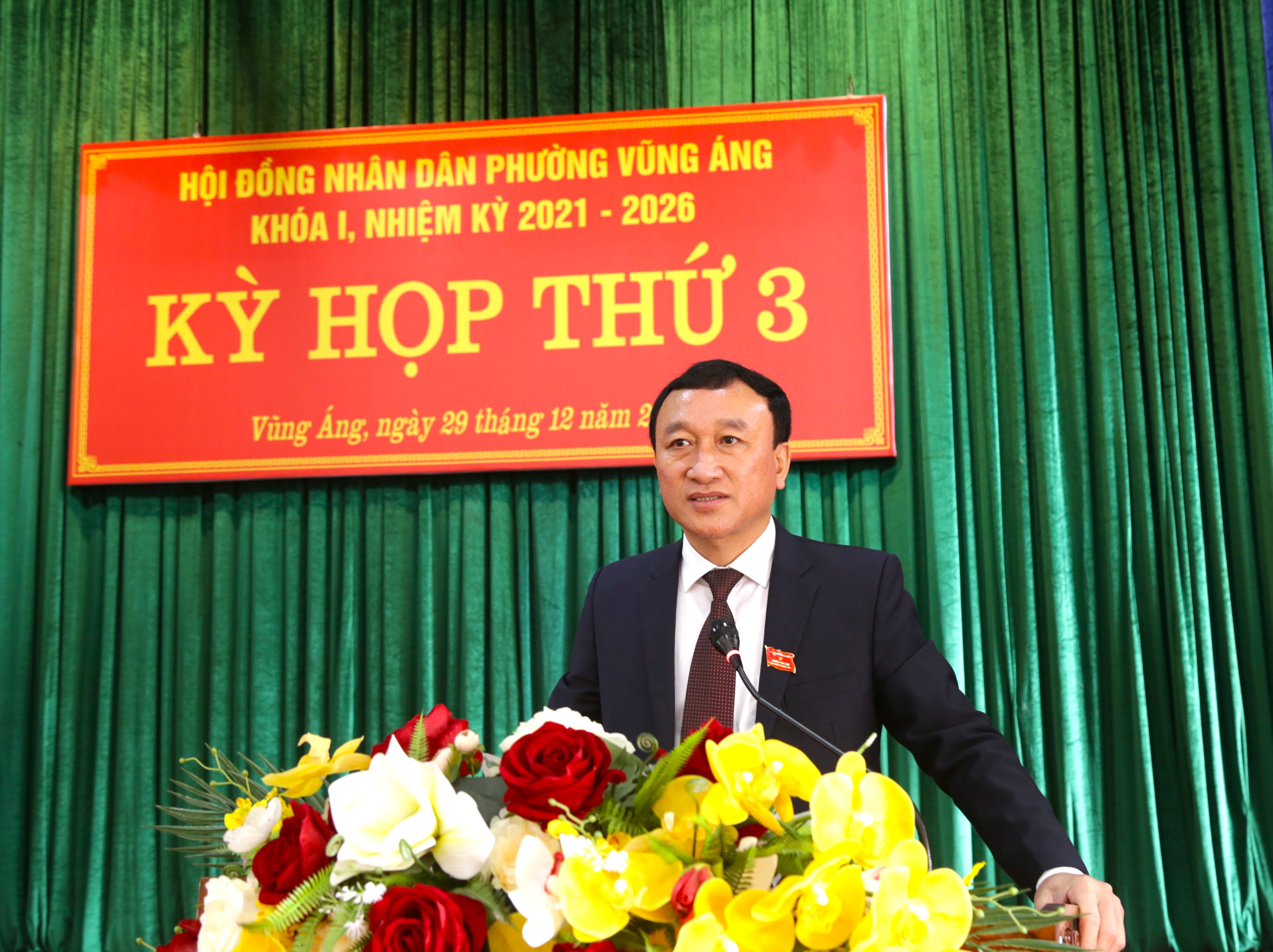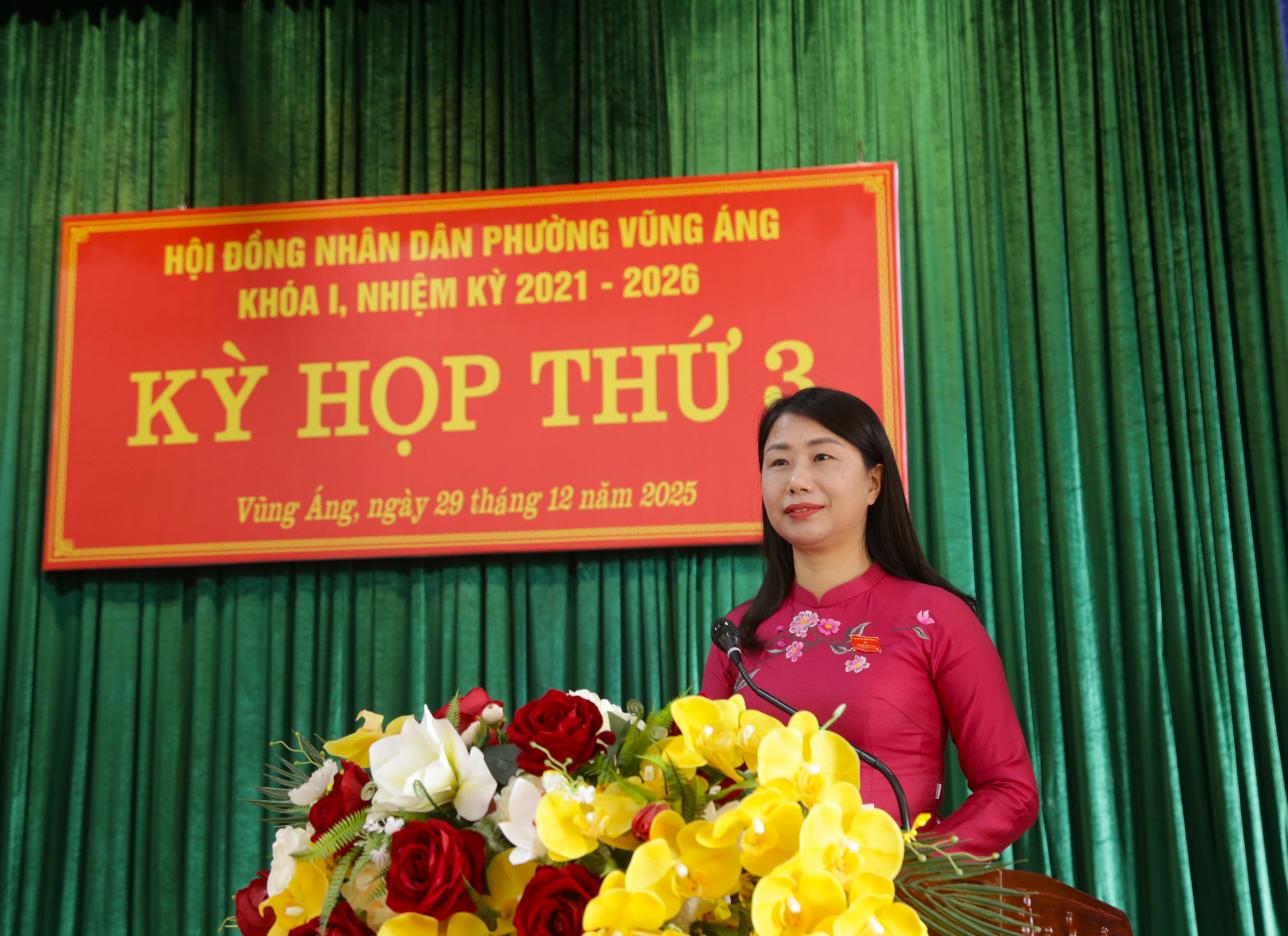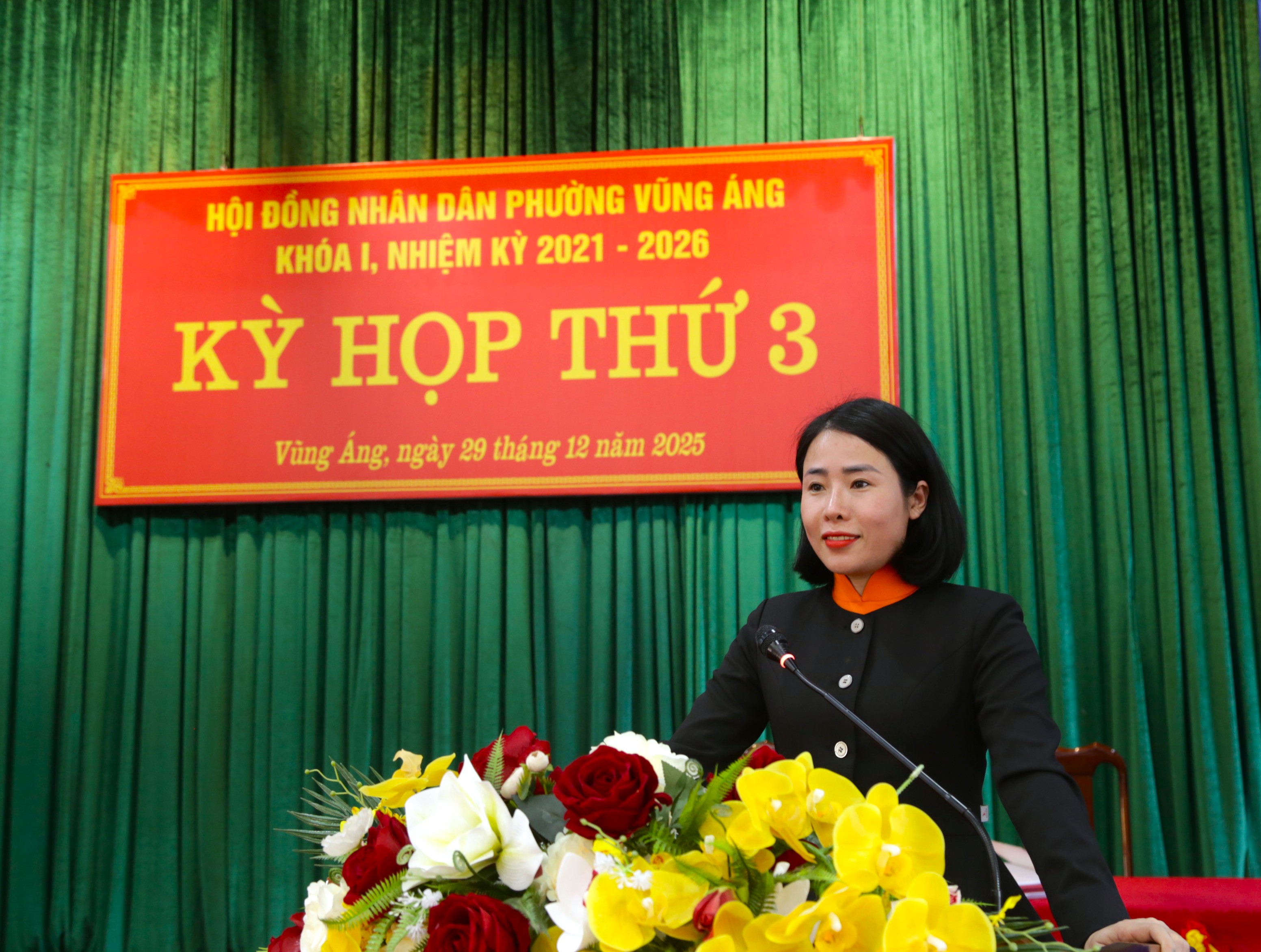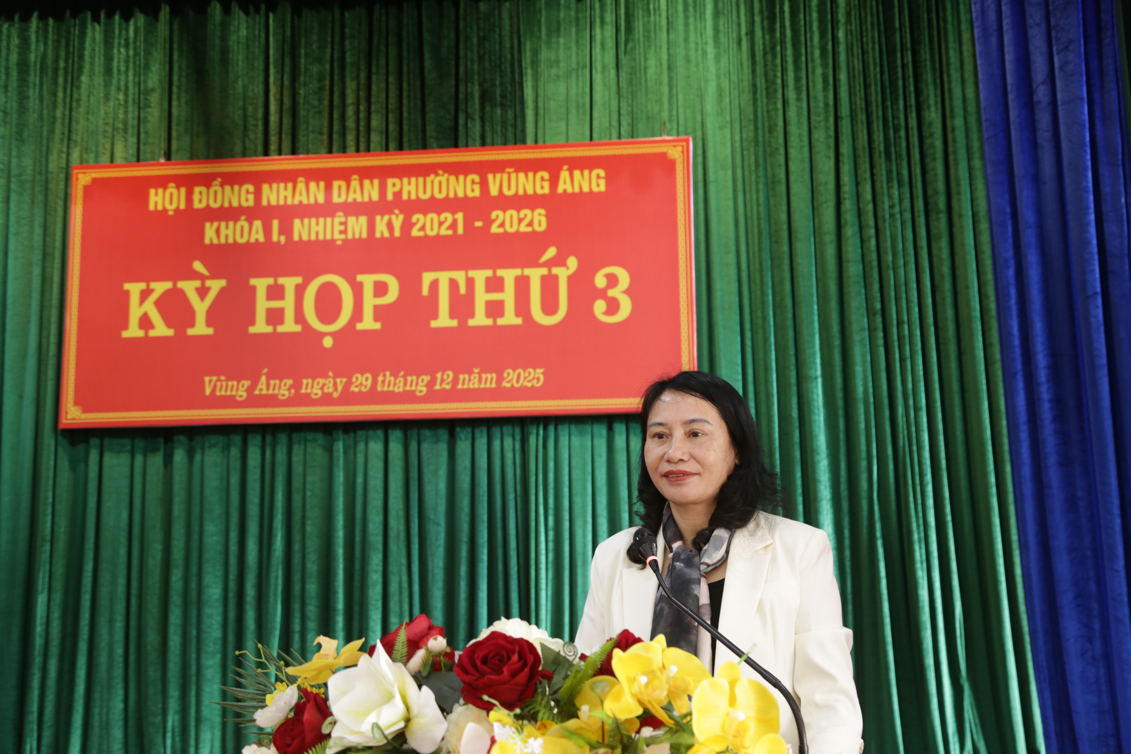 Phát biểu tại kỳ họp, đồng chí Nguyễn Thị Nhuần, Ủy viên Thường trực, Trưởng ban Pháp chế HĐND tỉnh đánh giá cao những kết quả mà phường Vũng Áng đã đạt được trong thời gian qua, đồng thời đề nghị địa phương chủ động chuẩn bị tốt các điều kiện để tổ chức thành công cuộc bầu cử đại biểu Quốc hội khóa XVI và đại biểu HĐND các cấp nhiệm kỳ 2026 – 2031, tiếp tục thực hiện hiệu quả các mục tiêu phát triển kinh tế – xã hội trong thời gian tới.
