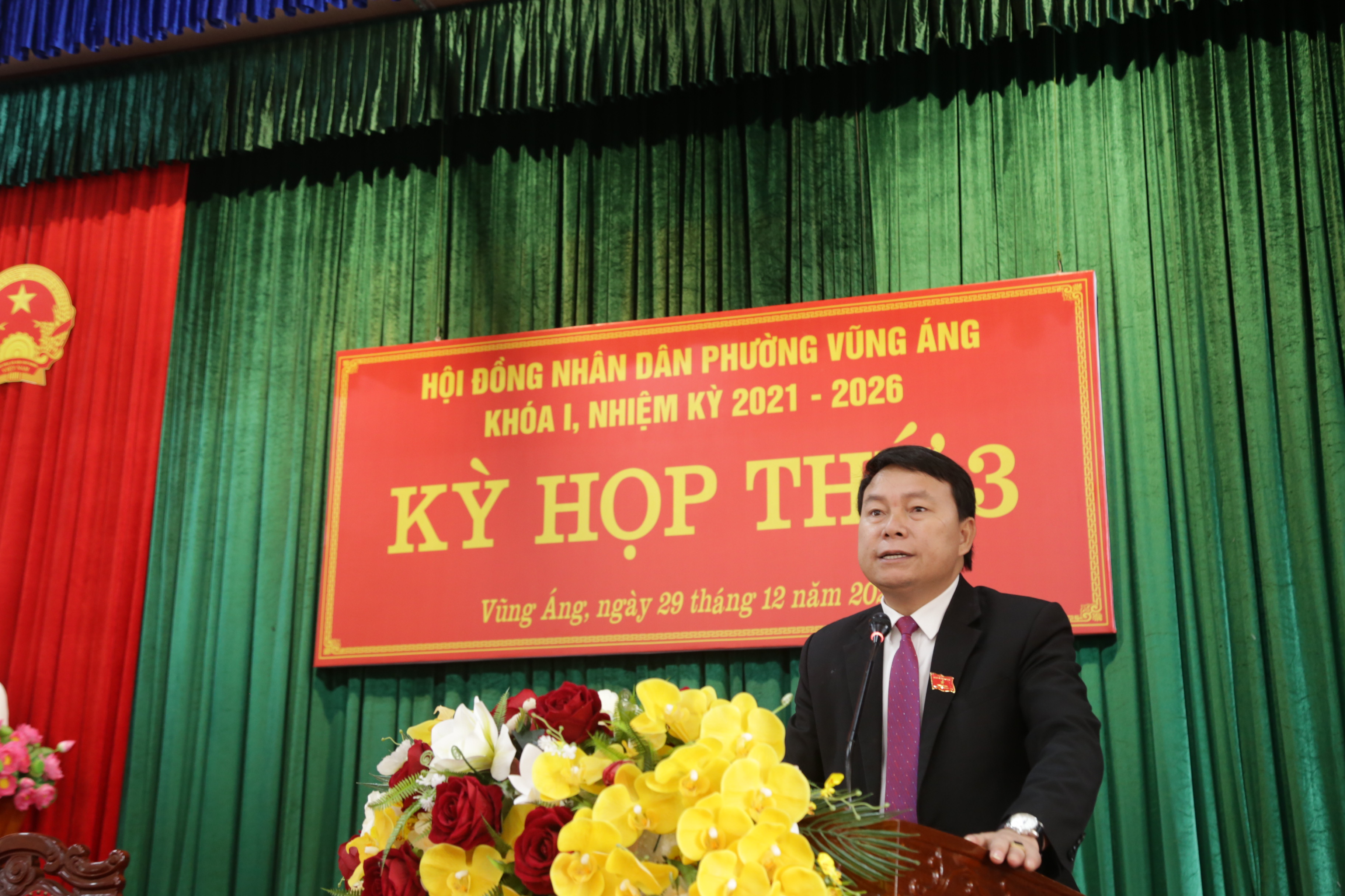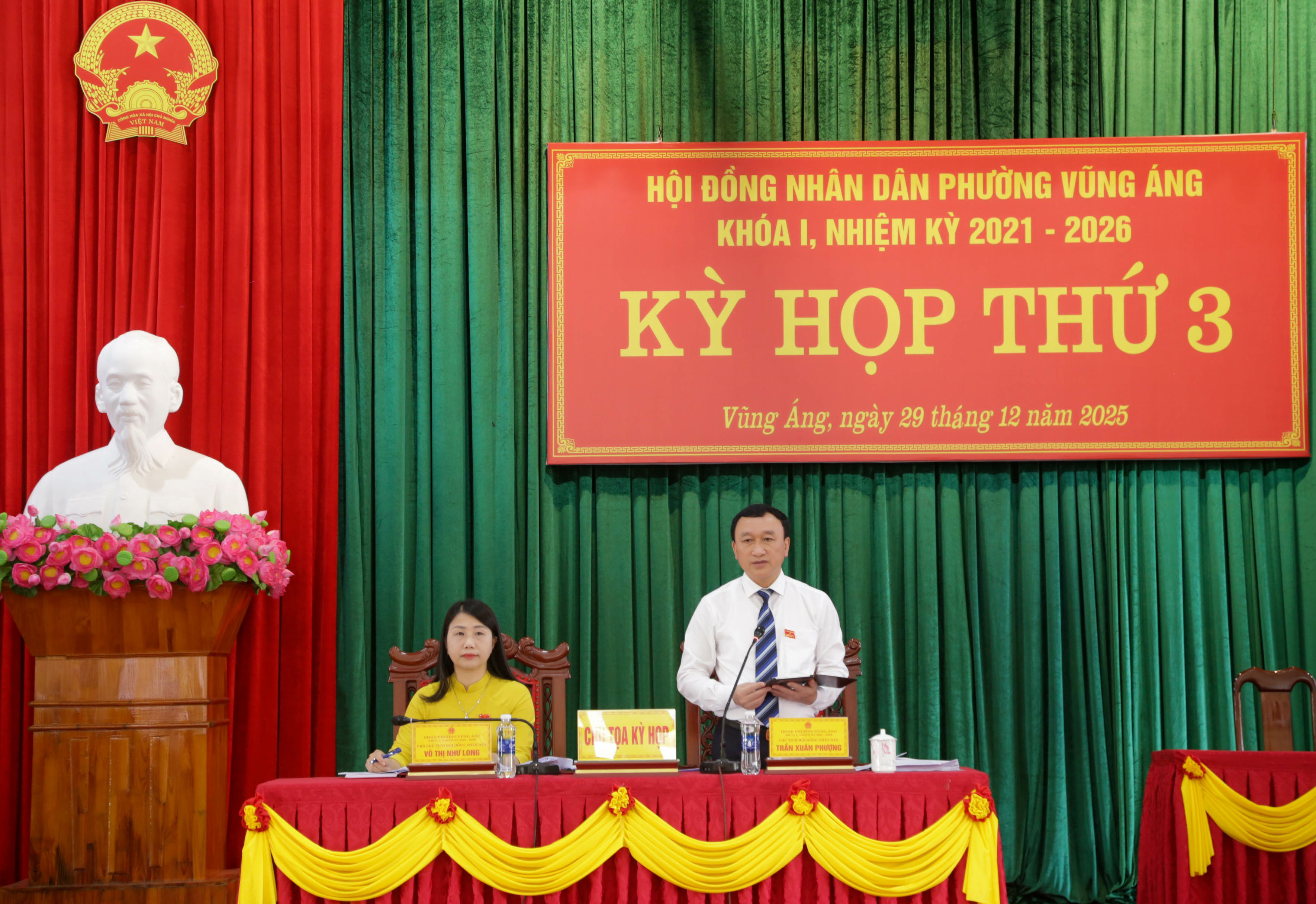 Sau 01 ngày làm việc khẩn trương, nghiêm túc và trách nhiệm, Kỳ họp thứ 3 HĐND phường Vũng Áng khóa I, nhiệm kỳ 2021 – 2026 đã hoàn thành toàn bộ nội dung, chương trình đề ra và bế mạc thành công tốt đẹp, thông qua nhiều nghị quyết quan trọng, tạo cơ sở để phường Vũng Áng triển khai thực hiện hiệu quả các nhiệm vụ phát triển kinh tế – xã hội năm 2026 và thời gian tới.