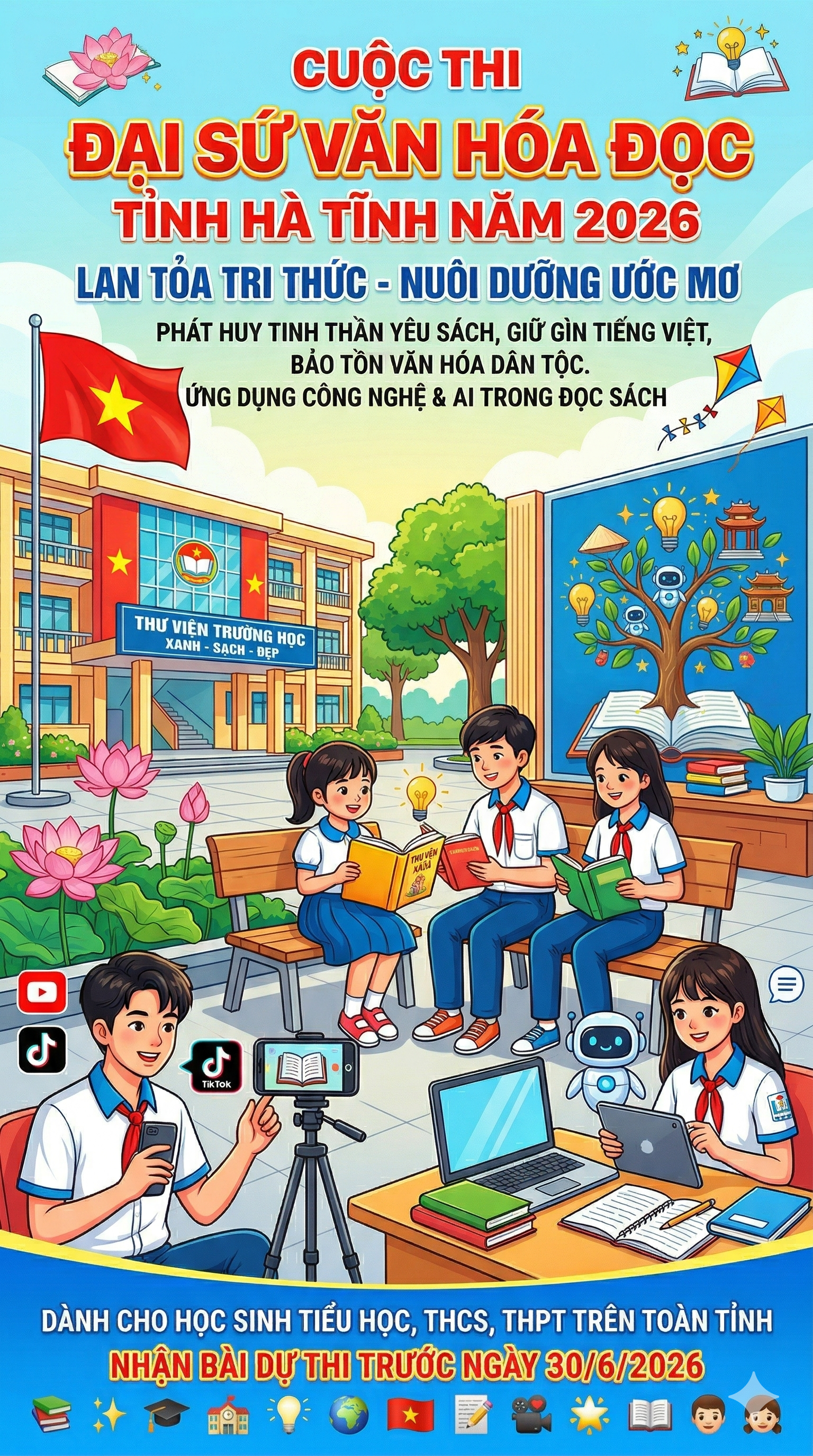 Cuộc thi Đại sứ Văn hóa đọc tỉnh Hà Tĩnh năm 2026 là hoạt động thiết thực nhằm lan tỏa văn hóa đọc, xây dựng xã hội học tập, góp phần phát triển con người Hà Tĩnh toàn diện trong giai đoạn mới.
