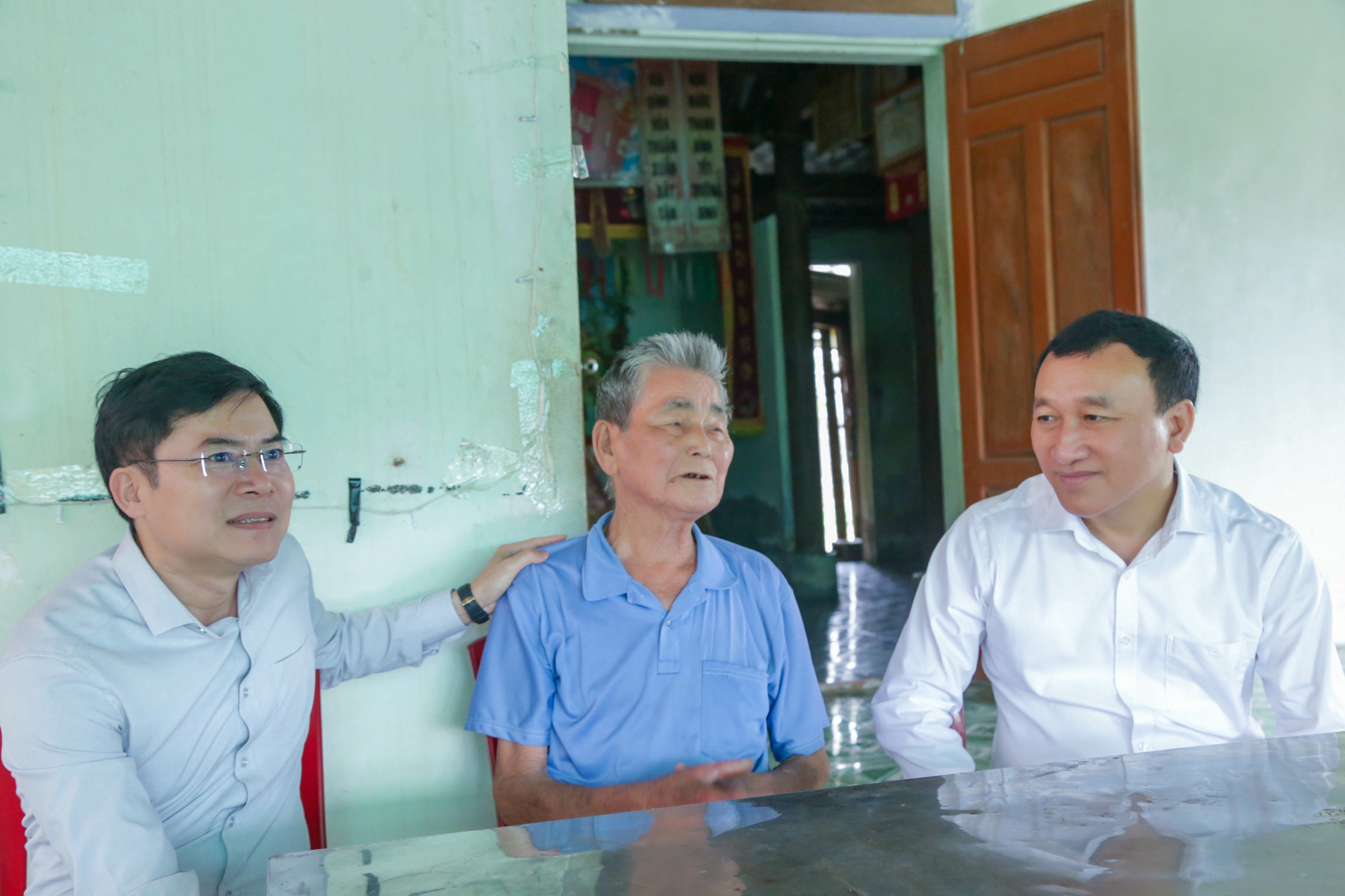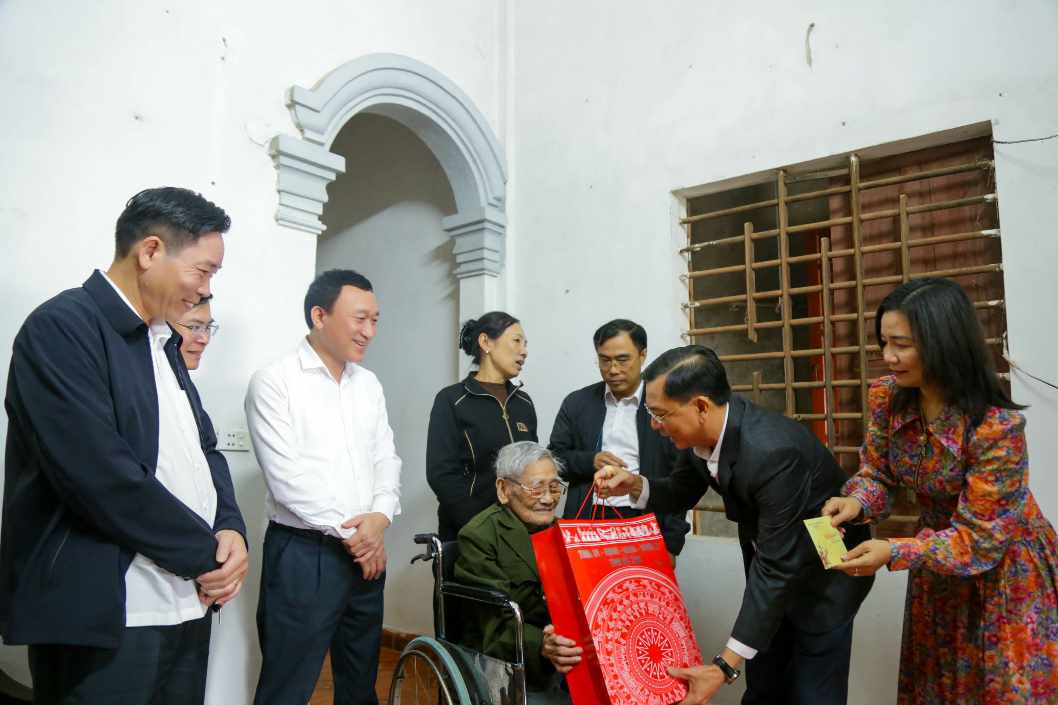 Các đồng chí Thường trực Đảng ủy, HĐND, lãnh đạo UBND, UBMTTQ và các ban nghành thăm hỏi tặng quà tại các gia đình chính sách, gia đình hoàn cảnh khó khăn