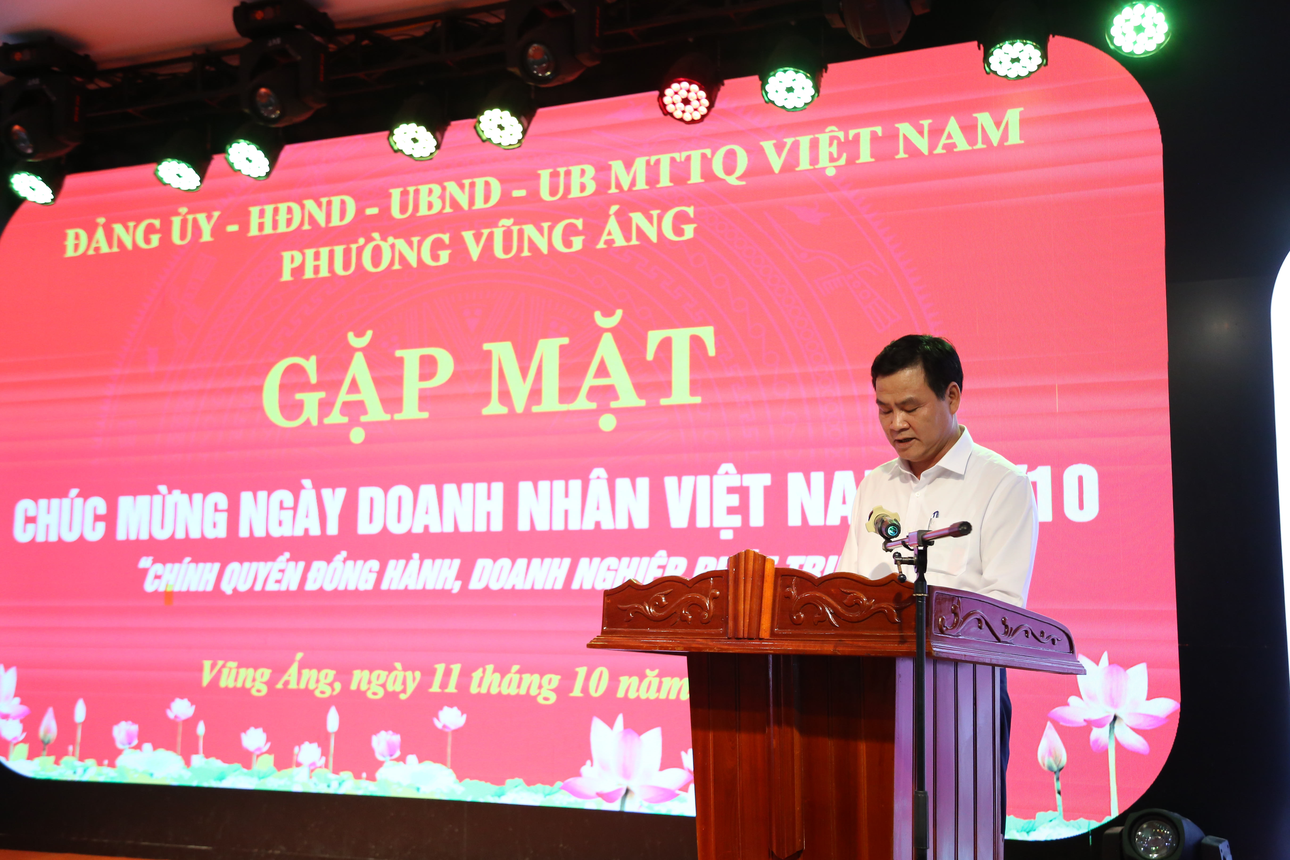 Tại buổi gặp mặt, Hội doanh nghiệp phường Vũng Áng đã ra mắt 14 thành viên Ban chấp hành hội, trên cơ sở kế thừa Hội Doanh nghiệp phường Kỳ Thịnh, phường Kỳ Long nhằm tập hợp, đoàn kết đội ngũ doanh nhân, phát huy vai trò nòng cốt của doanh nghiệp trong phát triển kinh tế - xã hội, góp phần xây dựng phường Vũng Áng ngày càng giàu đẹp, văn minh.