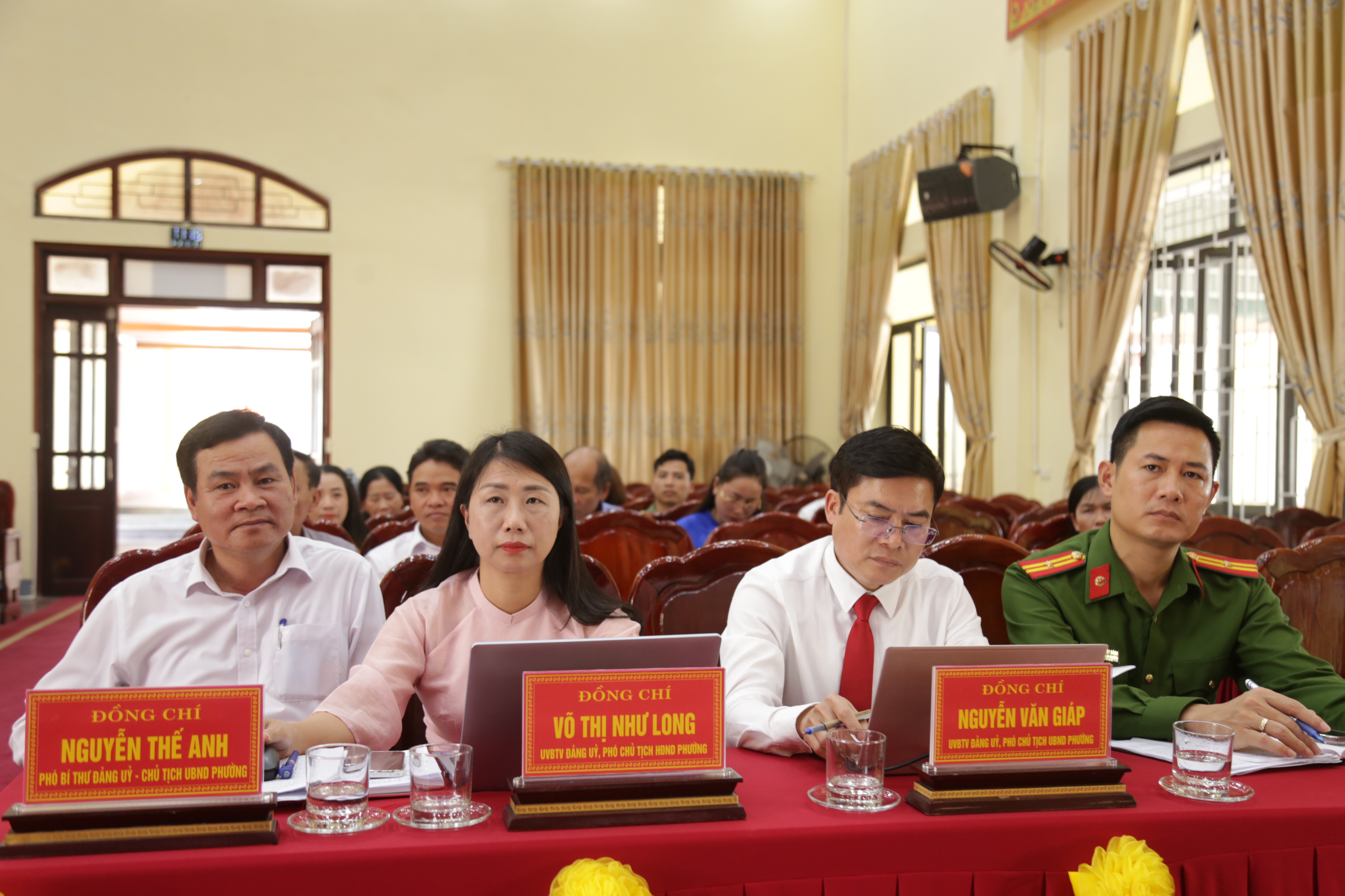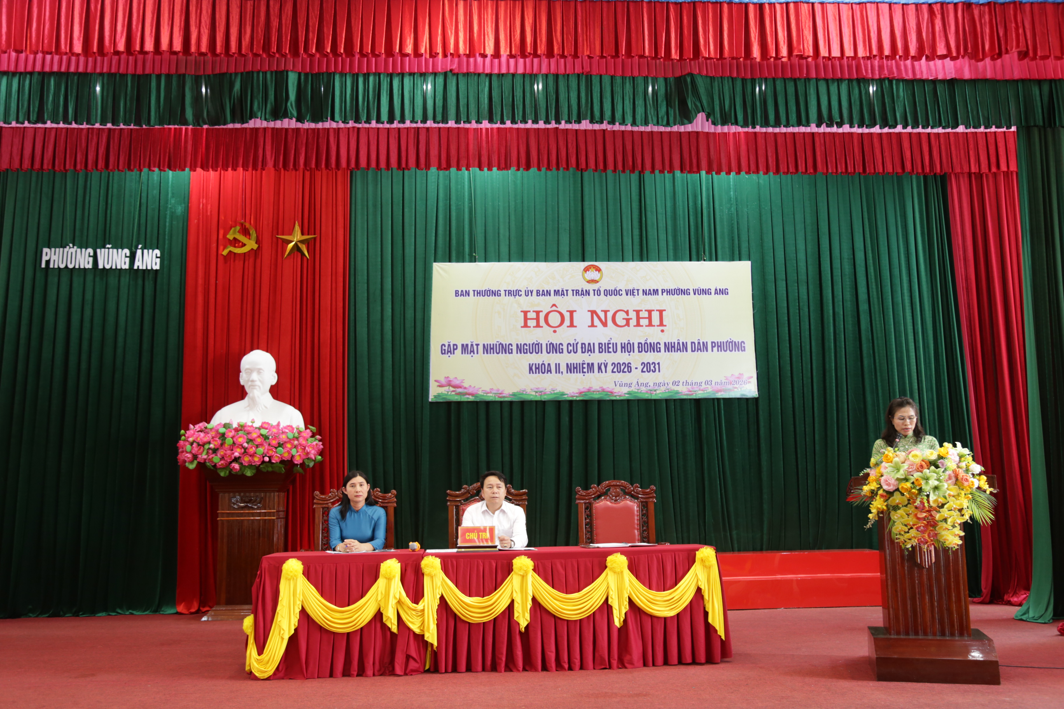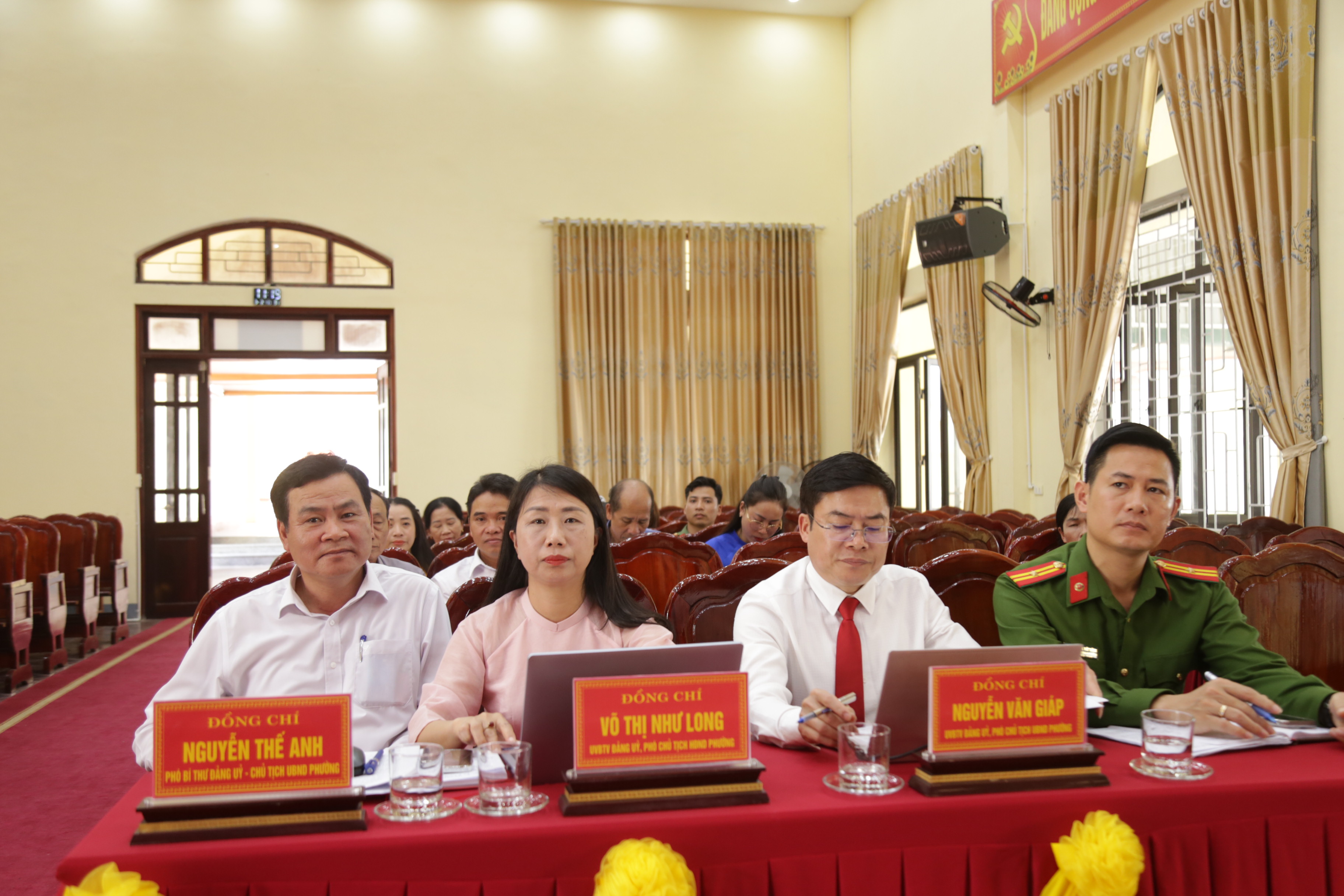 Lãnh đạo UBND phường báo cáo tình hình phát triển kinh tế – xã hội, làm cơ sở để các ứng cử viên xây dựng chương trình hành động sát thực tiễn.