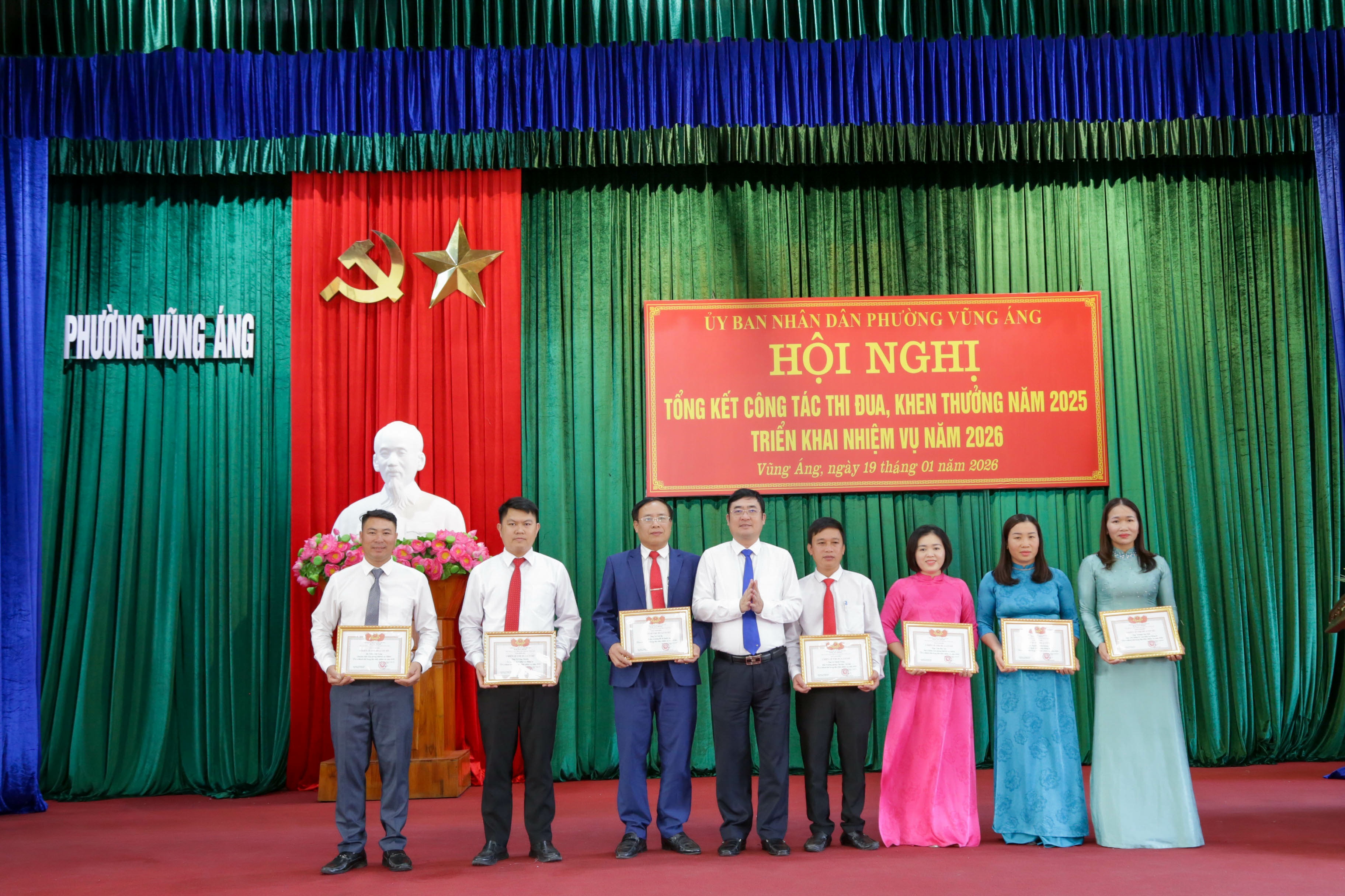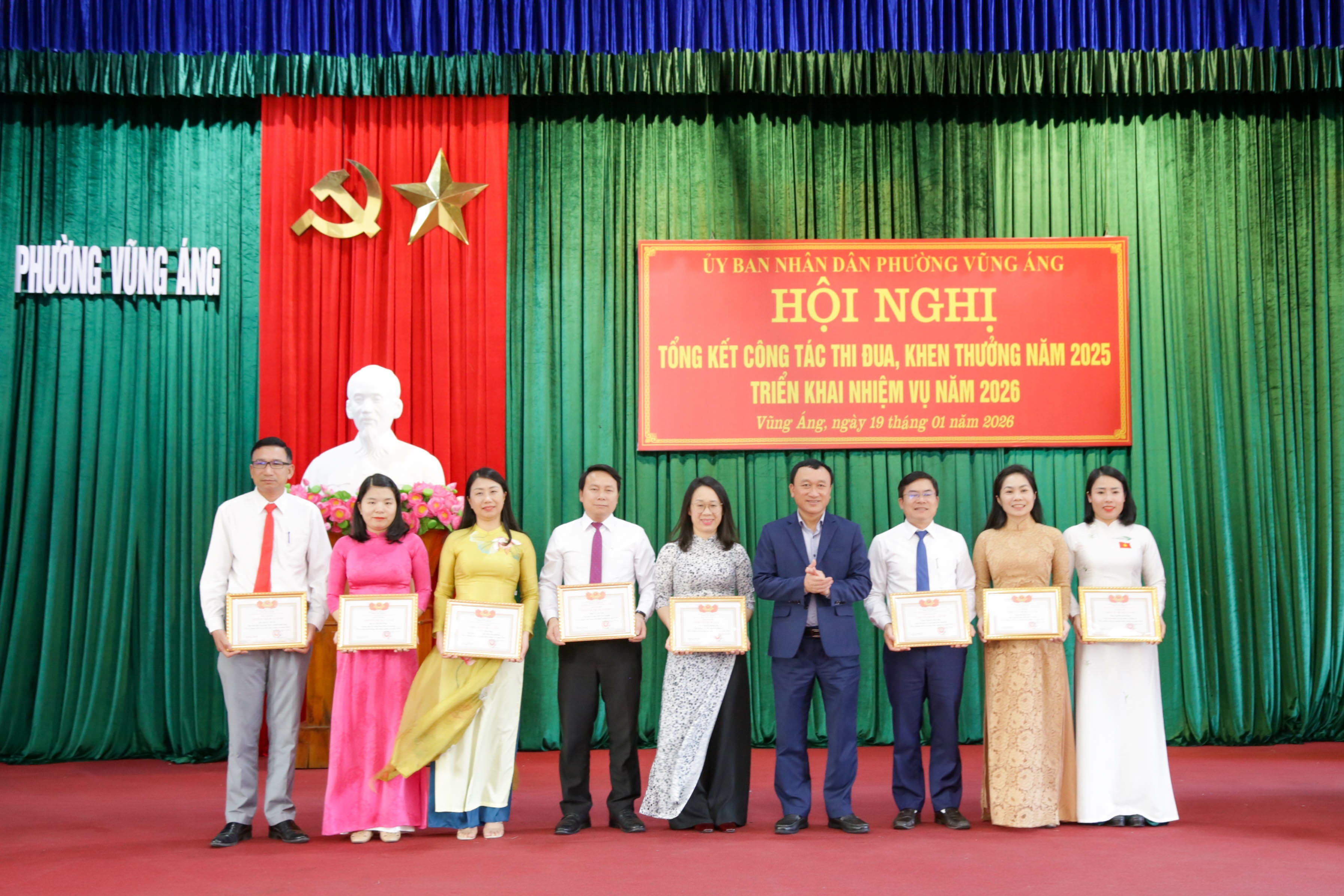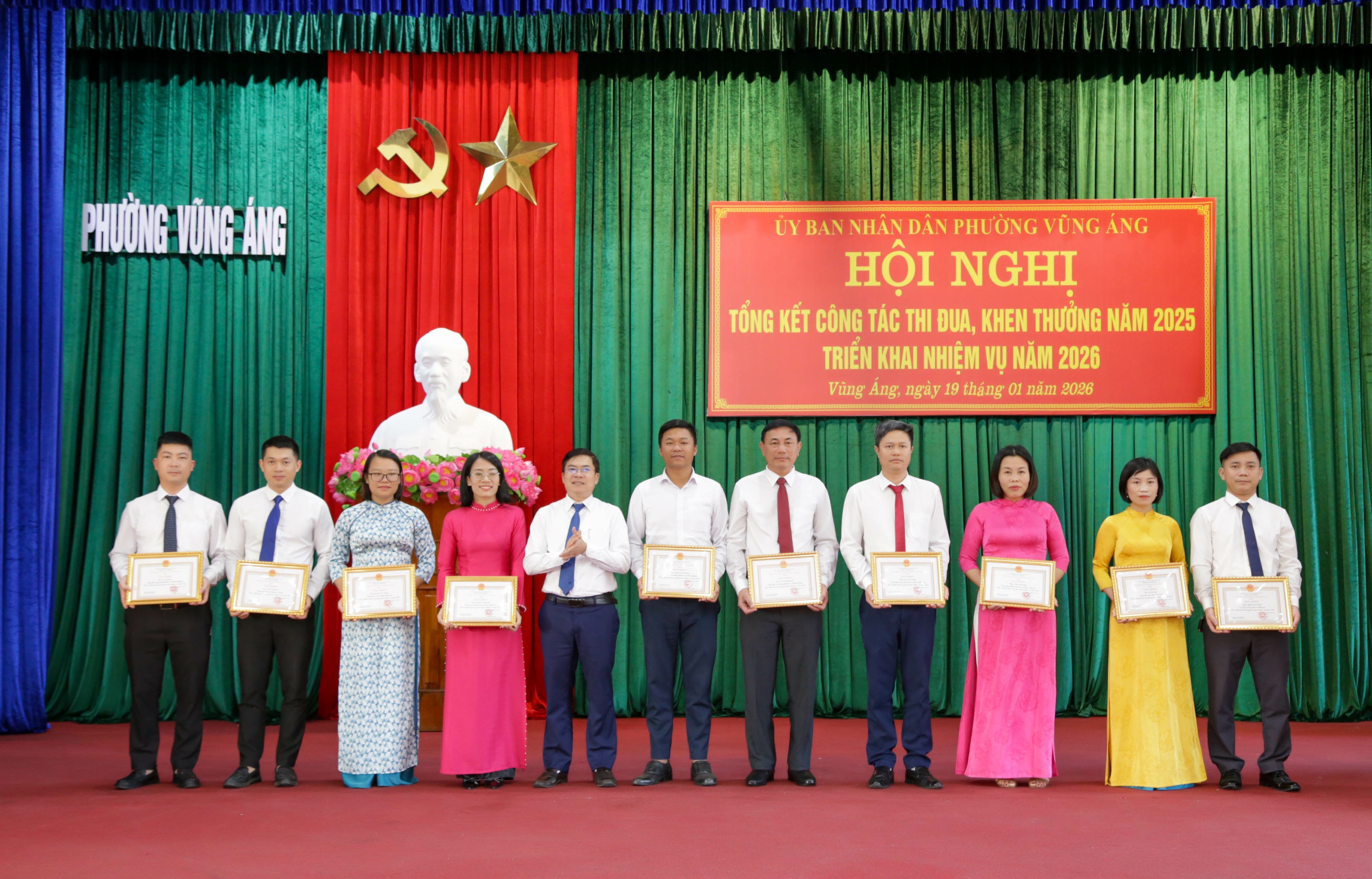 Tại hội nghị, UBND phường đã tặng danh hiệu Tập thể lao động tiên tiến cho 09 tập thể; danh hiệu Chiến sĩ thi đua cơ sở cho 22 cá nhân; danh hiệu Lao động tiên tiến cho 75 cá nhân; tặng Giấy khen Chủ tịch UBND phường cho 12 tập thể và 28 cá nhân có thành tích trong thực hiện nhiệm vụ năm 2025.