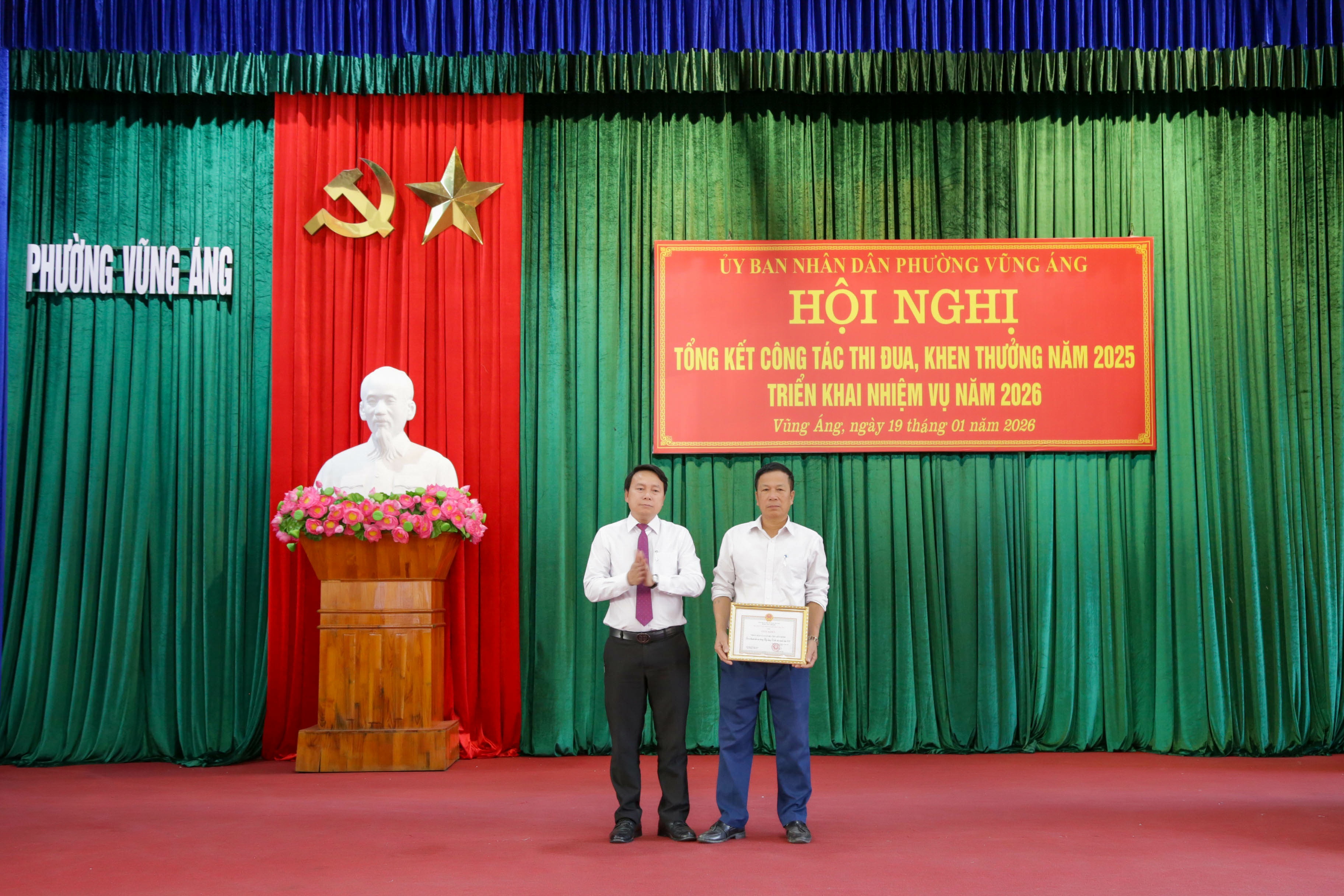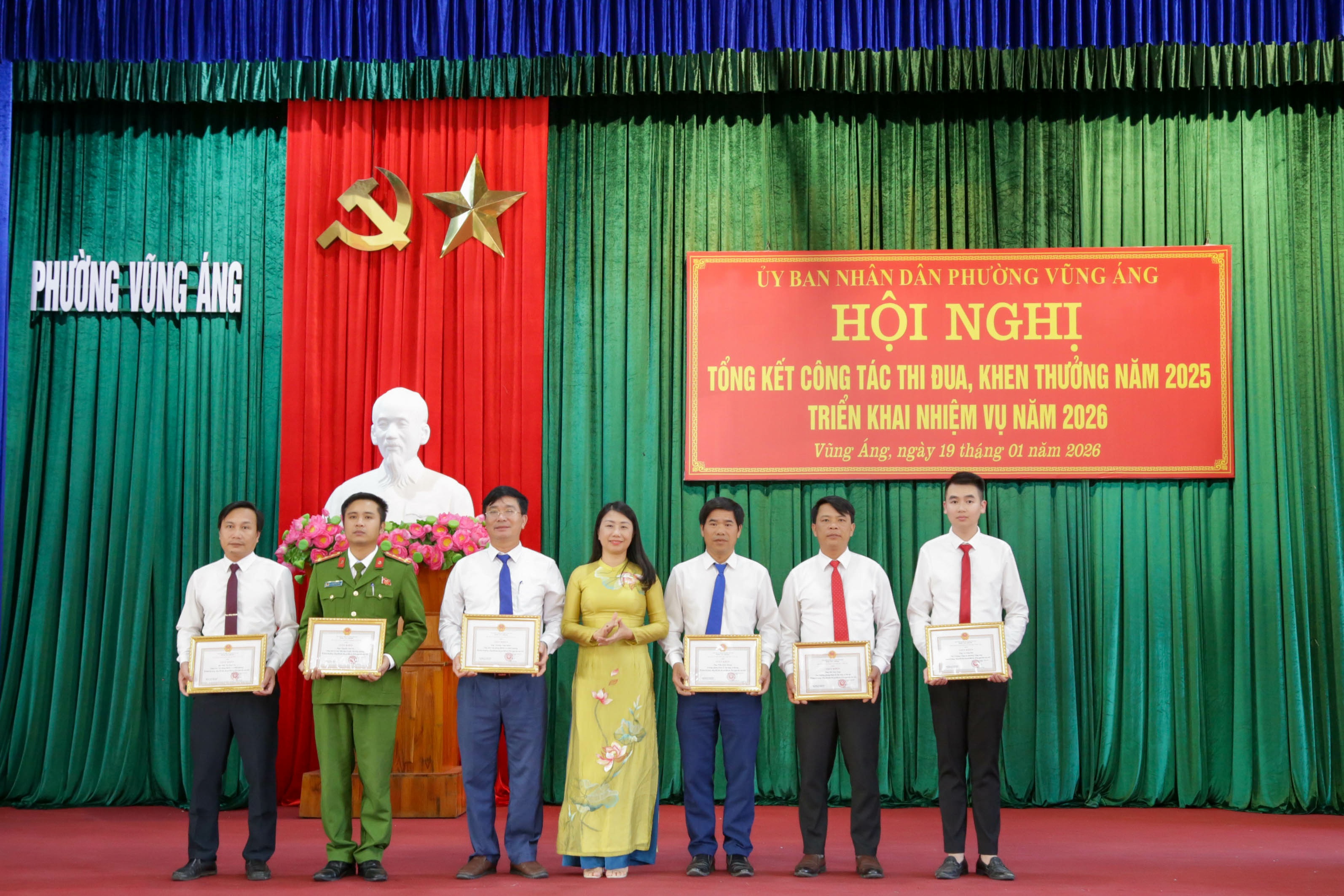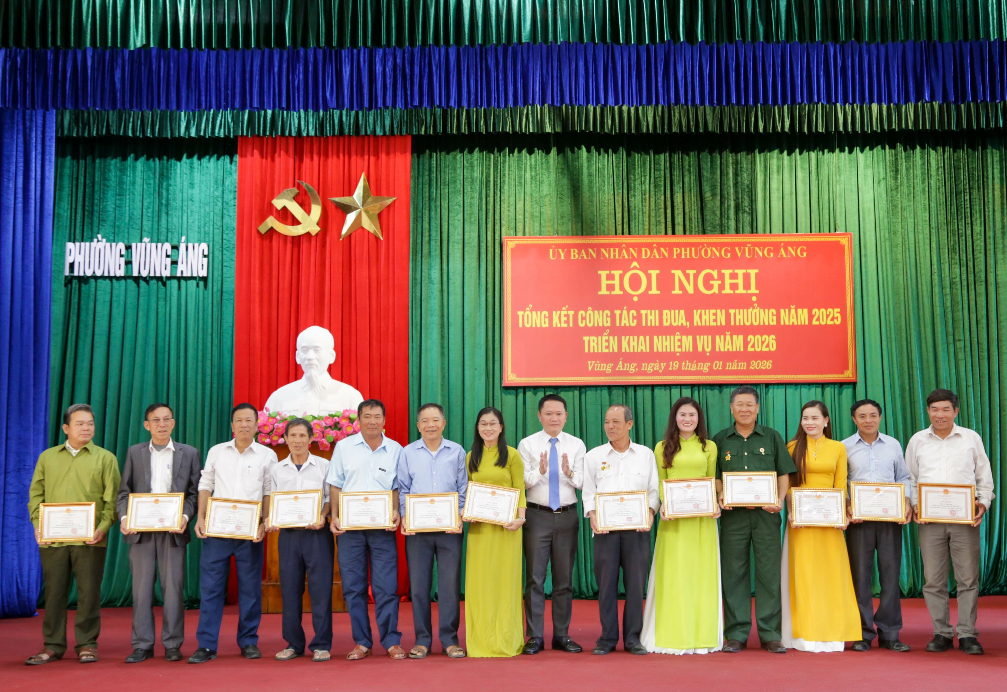 Tại hội nghị, UBND phường đã tặng danh hiệu Tập thể lao động tiên tiến cho 09 tập thể; danh hiệu Chiến sĩ thi đua cơ sở cho 22 cá nhân; danh hiệu Lao động tiên tiến cho 75 cá nhân; tặng Giấy khen Chủ tịch UBND phường cho 12 tập thể và 28 cá nhân có thành tích trong thực hiện nhiệm vụ năm 2025.