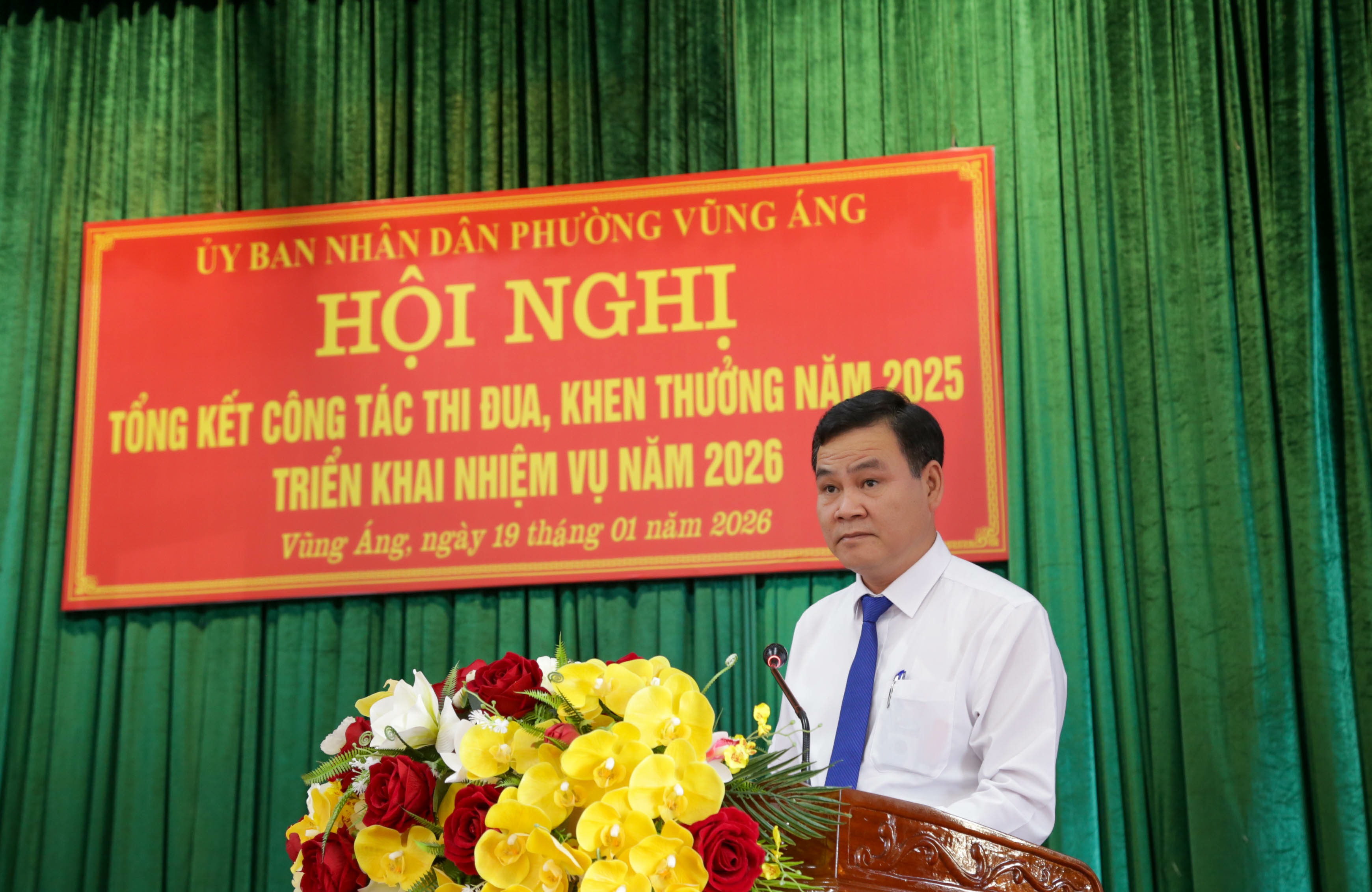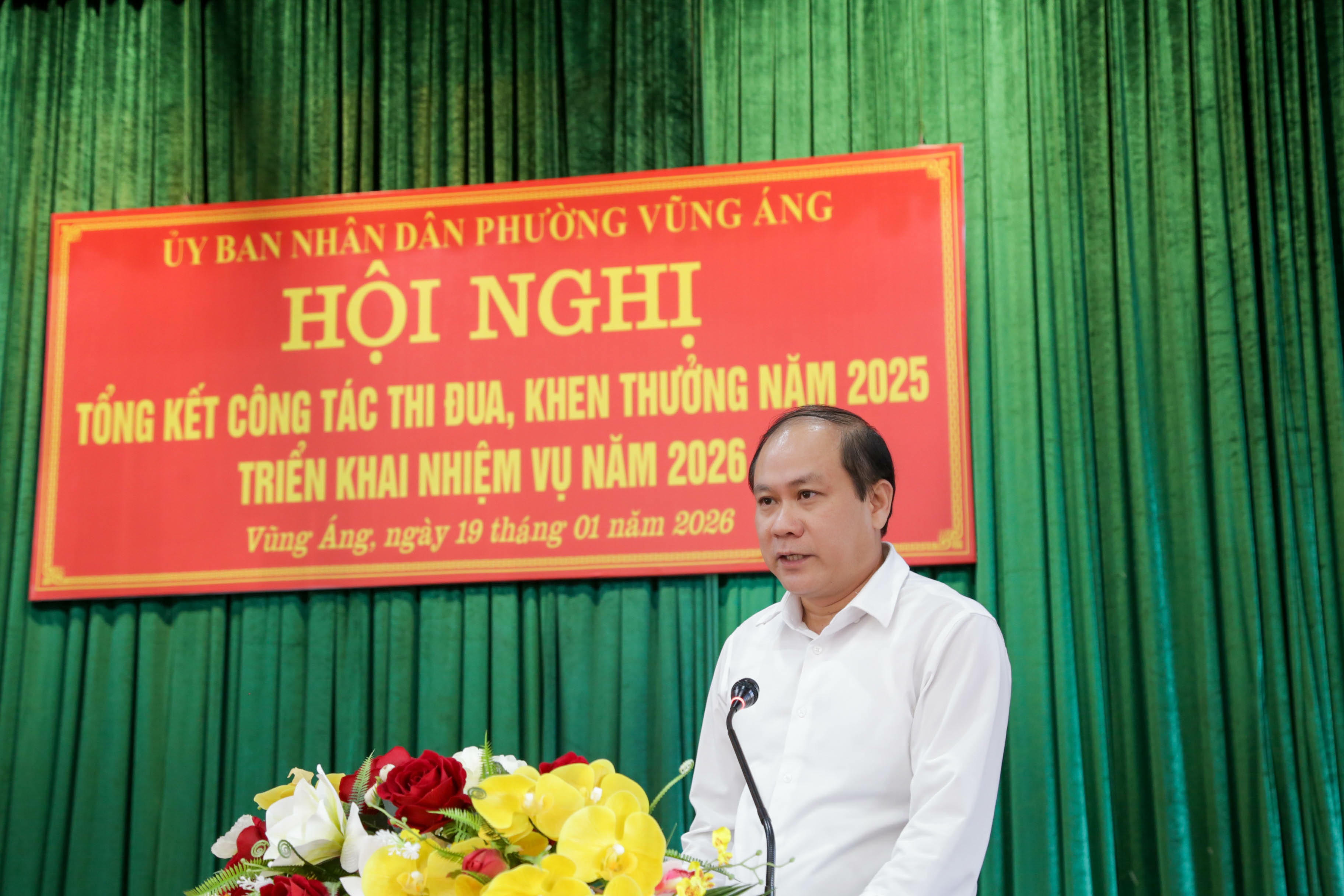 Phát biểu tại hội nghị, đồng chí Nguyễn Văn Hùng ghi nhận và đánh giá cao những kết quả Đảng bộ, chính quyền và Nhân dân phường Vũng Áng đã đạt được trong năm 2025; Đồng chí nhấn mạnh: Năm 2026 là năm có ý nghĩa then chốt, phường cần tiếp tục phát huy tinh thần đoàn kết, đổi mới sáng tạo; đẩy mạnh các phong trào thi đua yêu nước gắn với thực tiễn cơ sở; tập trung cao độ cho công tác GPMB, chuyển đổi số và xây dựng đô thị văn minh, quyết tâm hoàn thành xuất sắc các chỉ tiêu Nghị quyết Đại hội Đảng các cấp.