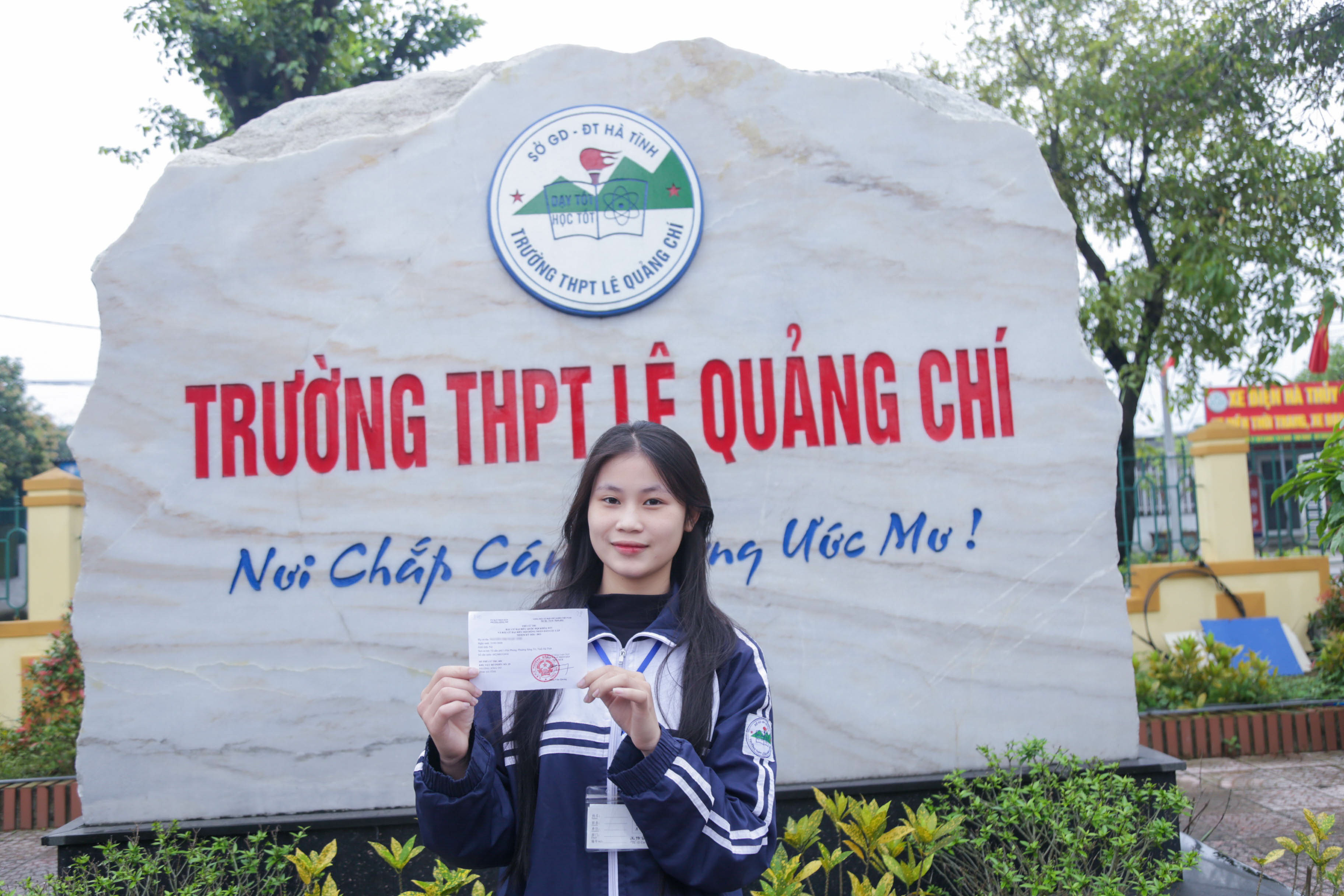 Không chỉ riêng Thùy Trang, tại Trường THPT Lê Quảng Chí năm nay cũng có nhiều học sinh sinh năm 2008 lần đầu đủ điều kiện tham gia bầu cử. Cầm trên tay tấm thẻ cử tri vừa được phát, em Nguyễn Thị Ngọc Ánh, học sinh lớp 12A1 không giấu được sự háo hức.