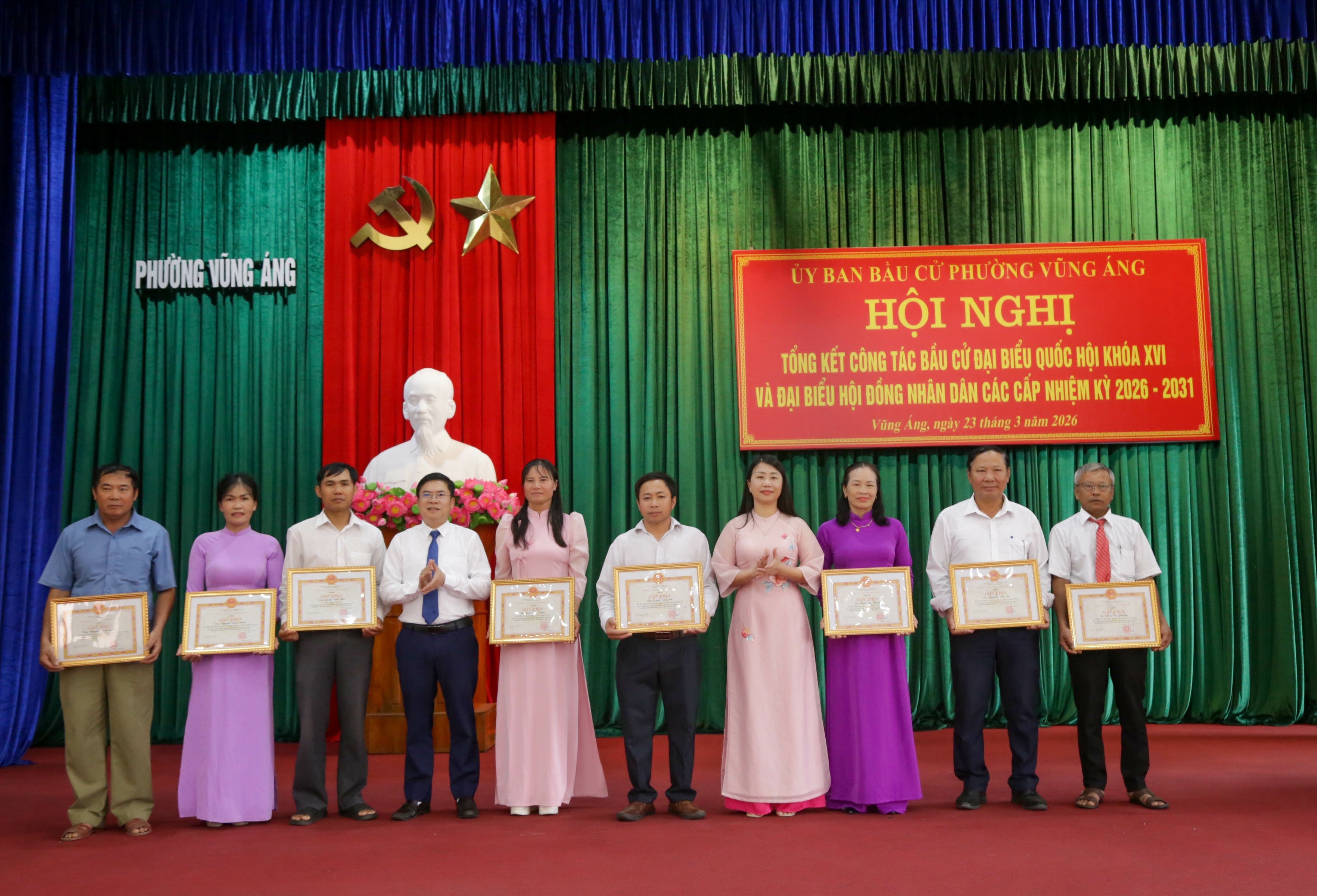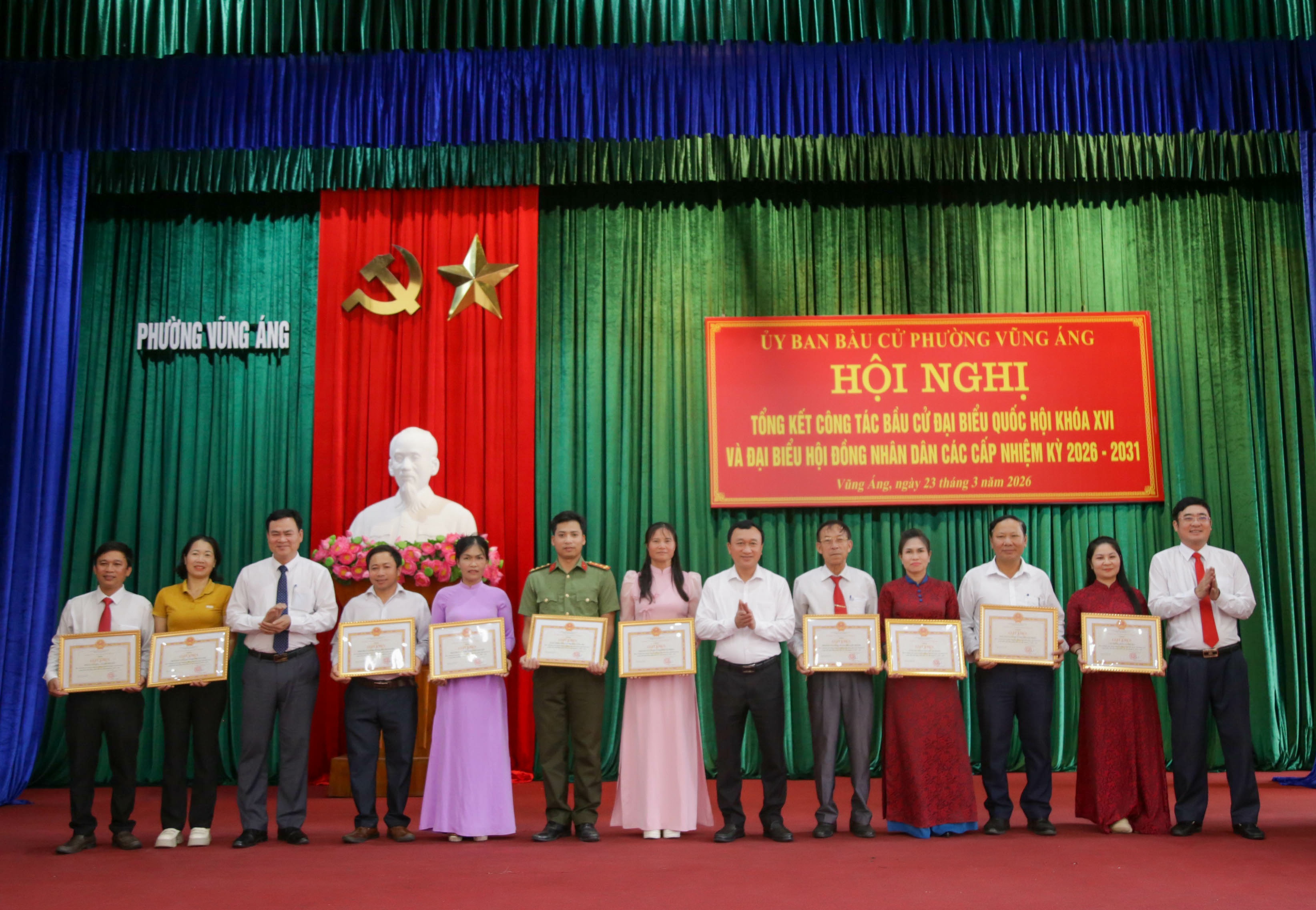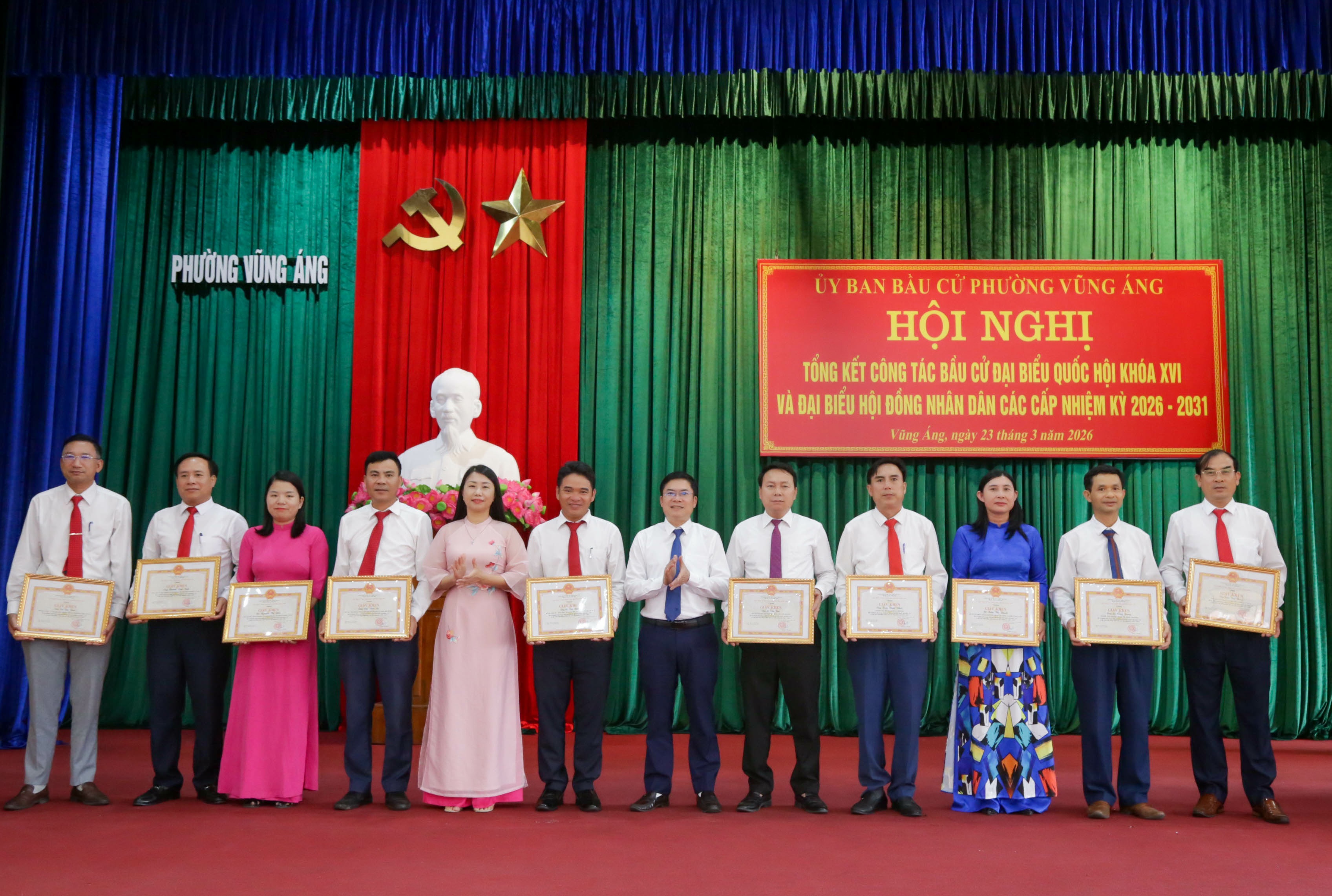 Nhân dịp này, nhằm kịp thời biểu dương, ghi nhận những đóng góp tích cực của các tập thể, cá nhân trong công tác tổ chức bầu cử, Ủy ban Bầu cử phường đã tham mưu Chủ tịch Ủy ban nhân dân phường quyết định tặng Giấy khen cho 10 tập thể và 40 cá nhân có thành tích xuất sắc trong thực hiện nhiệm vụ bầu cử đại biểu Quốc hội khóa XVI và đại biểu HĐND các cấp nhiệm kỳ 2026–2031. Đây là sự ghi nhận xứng đáng, góp phần động viên, khích lệ các đơn vị, cá nhân tiếp tục phát huy tinh thần trách nhiệm, hoàn thành tốt các nhiệm vụ chính trị được giao trong thời gian tới.