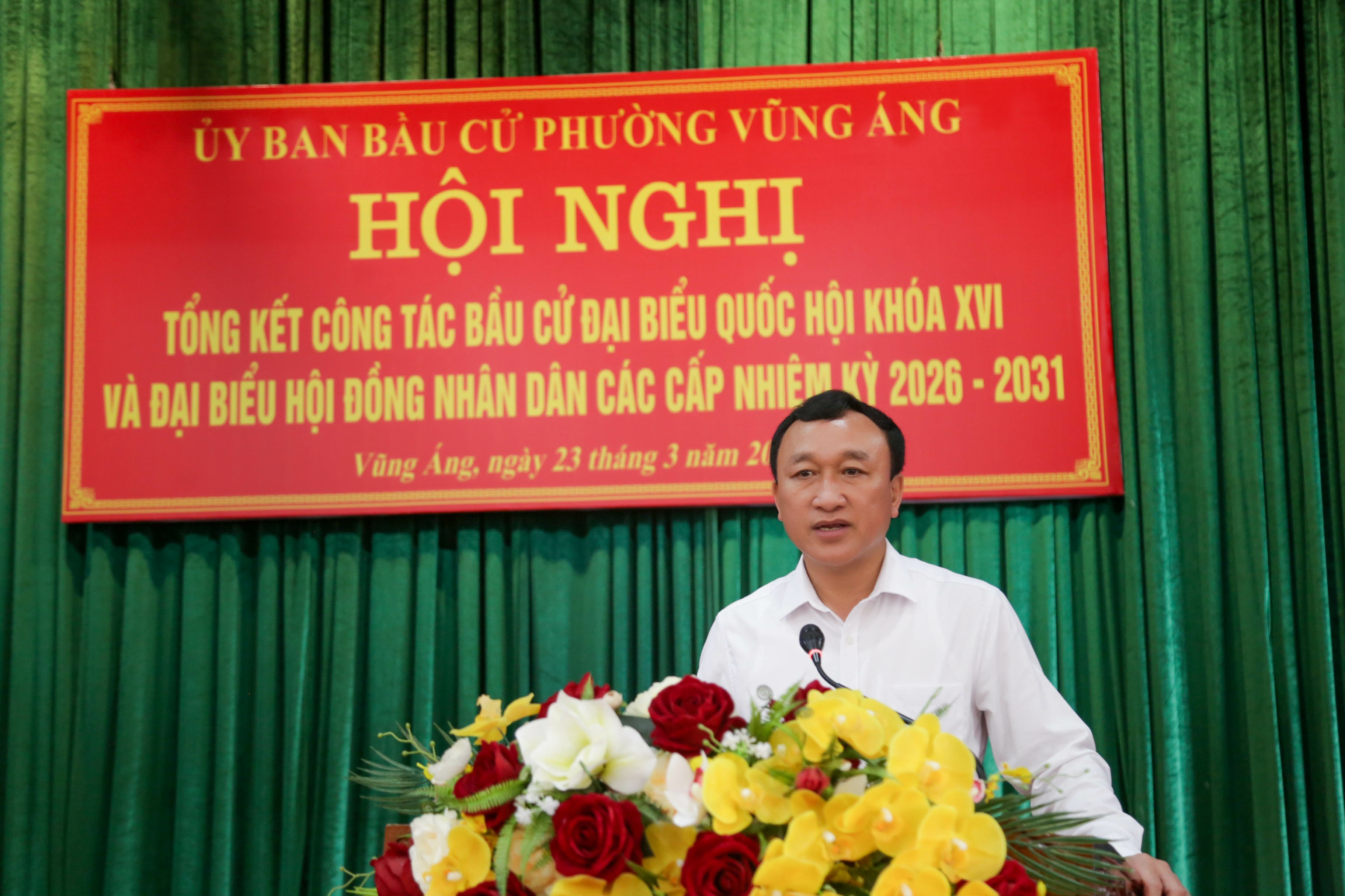 Đồng chí nhấn mạnh, thành công của cuộc bầu cử là tiền đề quan trọng để tiếp tục củng cố niềm tin của Nhân dân đối với Đảng, Nhà nước; xây dựng hệ thống chính trị vững mạnh, hoạt động hiệu lực, hiệu quả, tạo cơ sở để phường Vũng Áng phát huy tinh thần đoàn kết, quyết tâm thực hiện thắng lợi các nhiệm vụ chính trị trong giai đoạn mới.