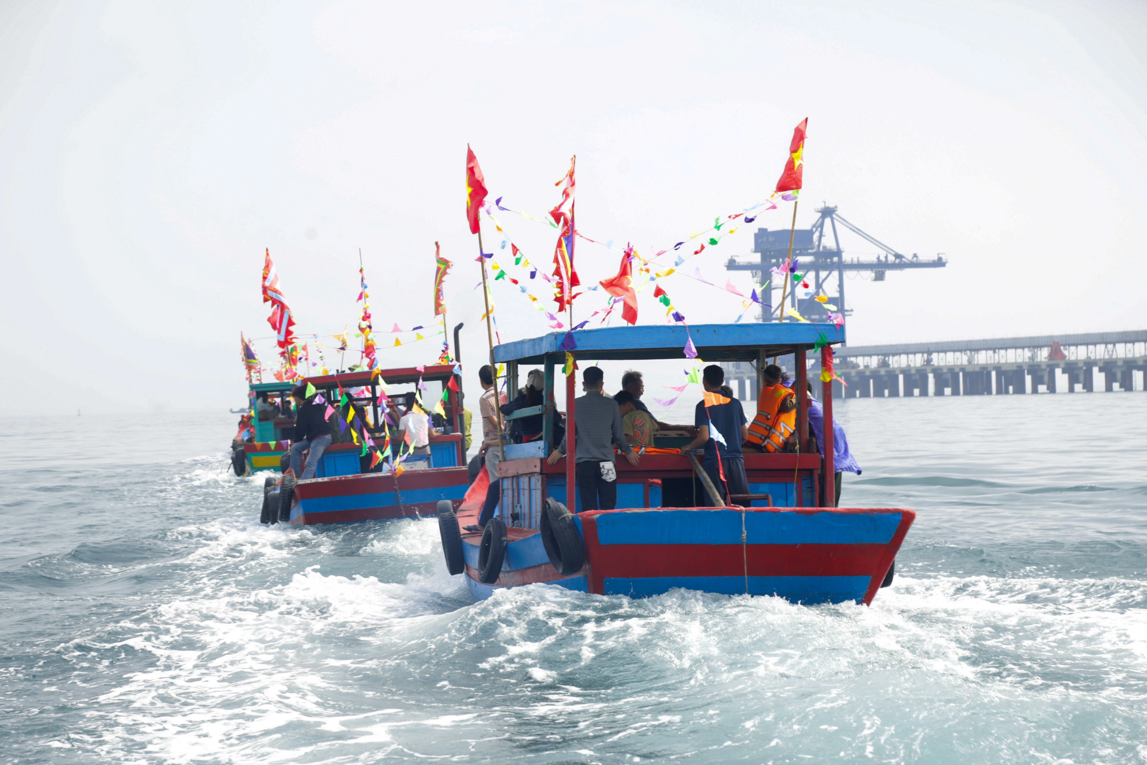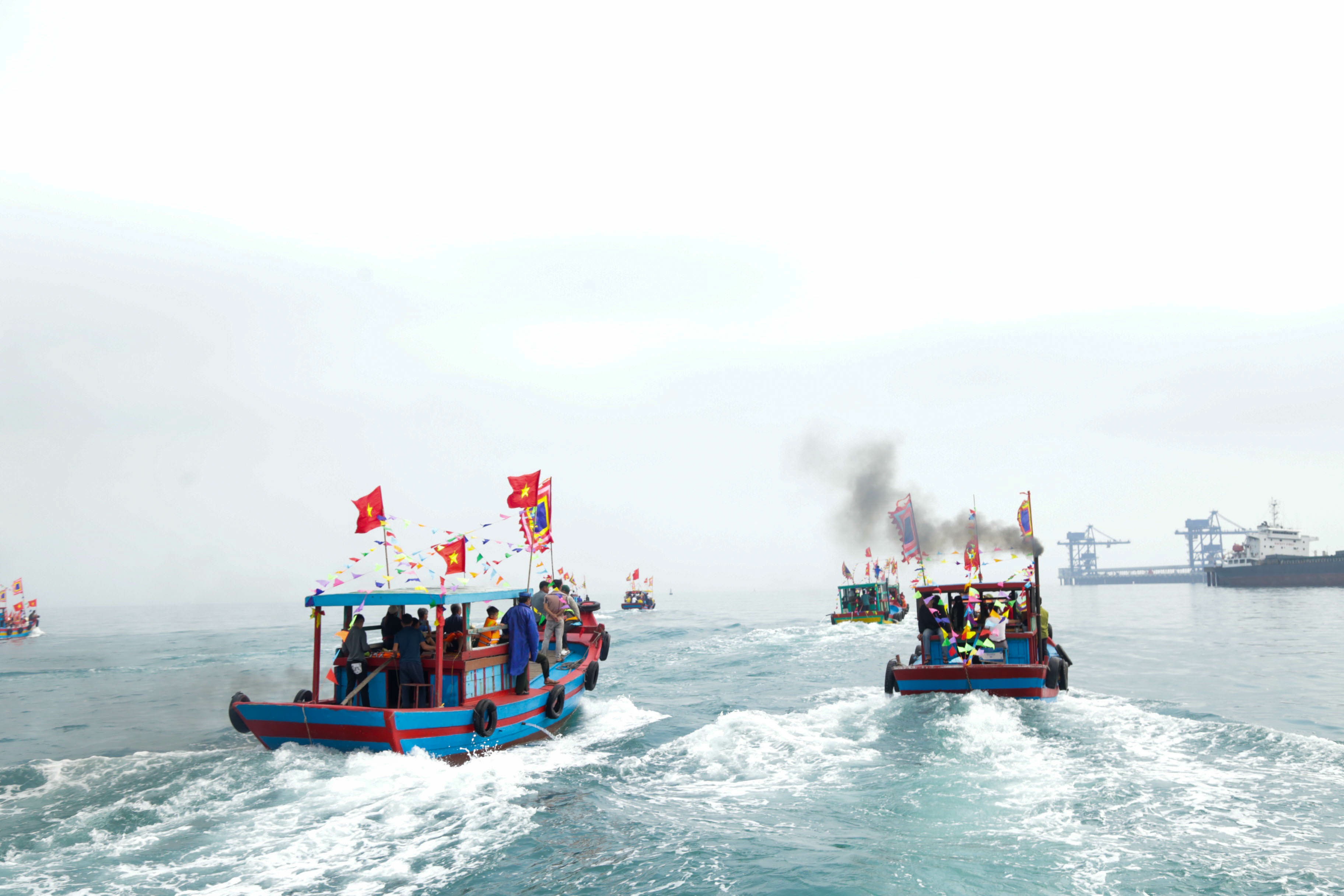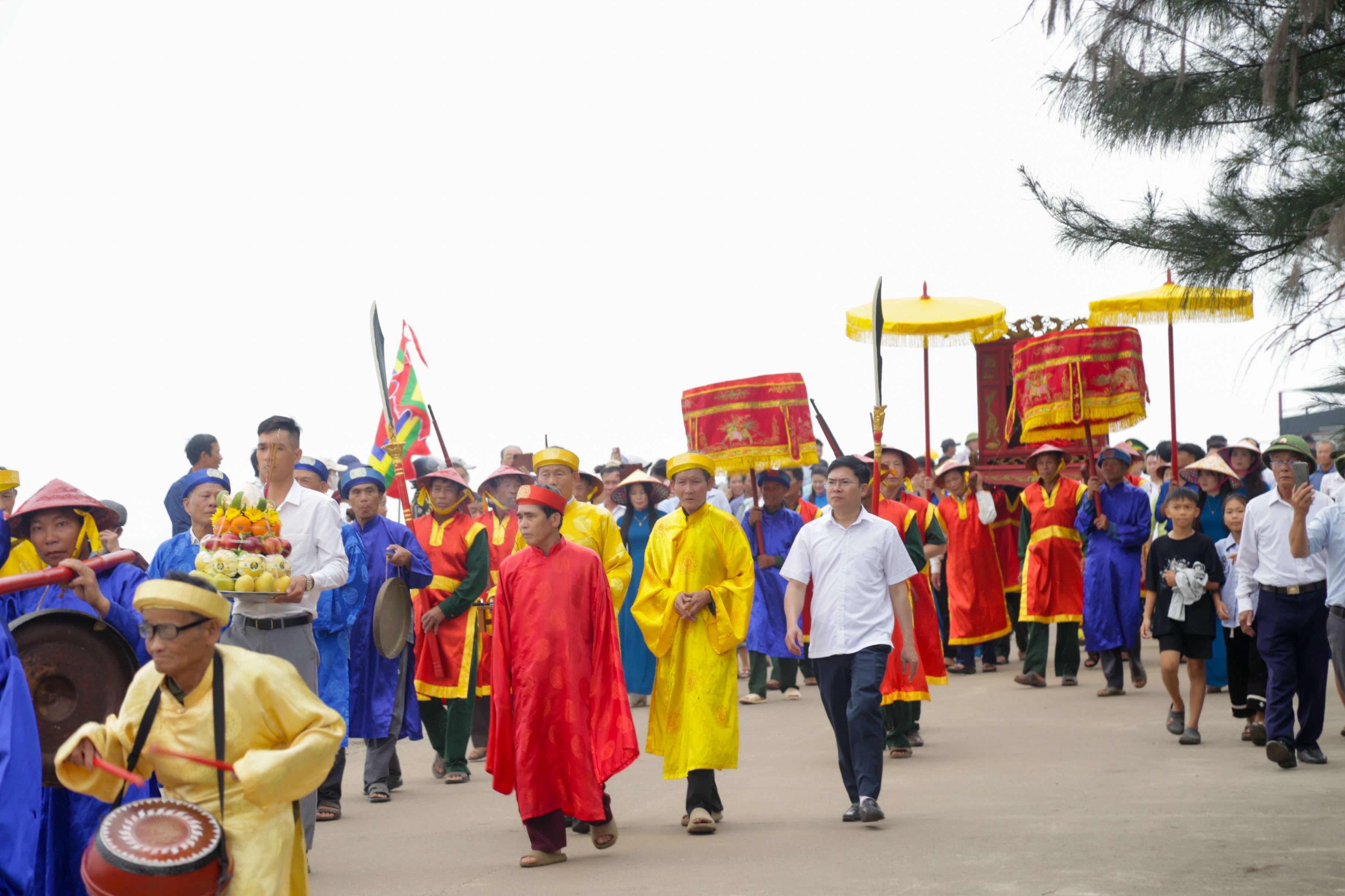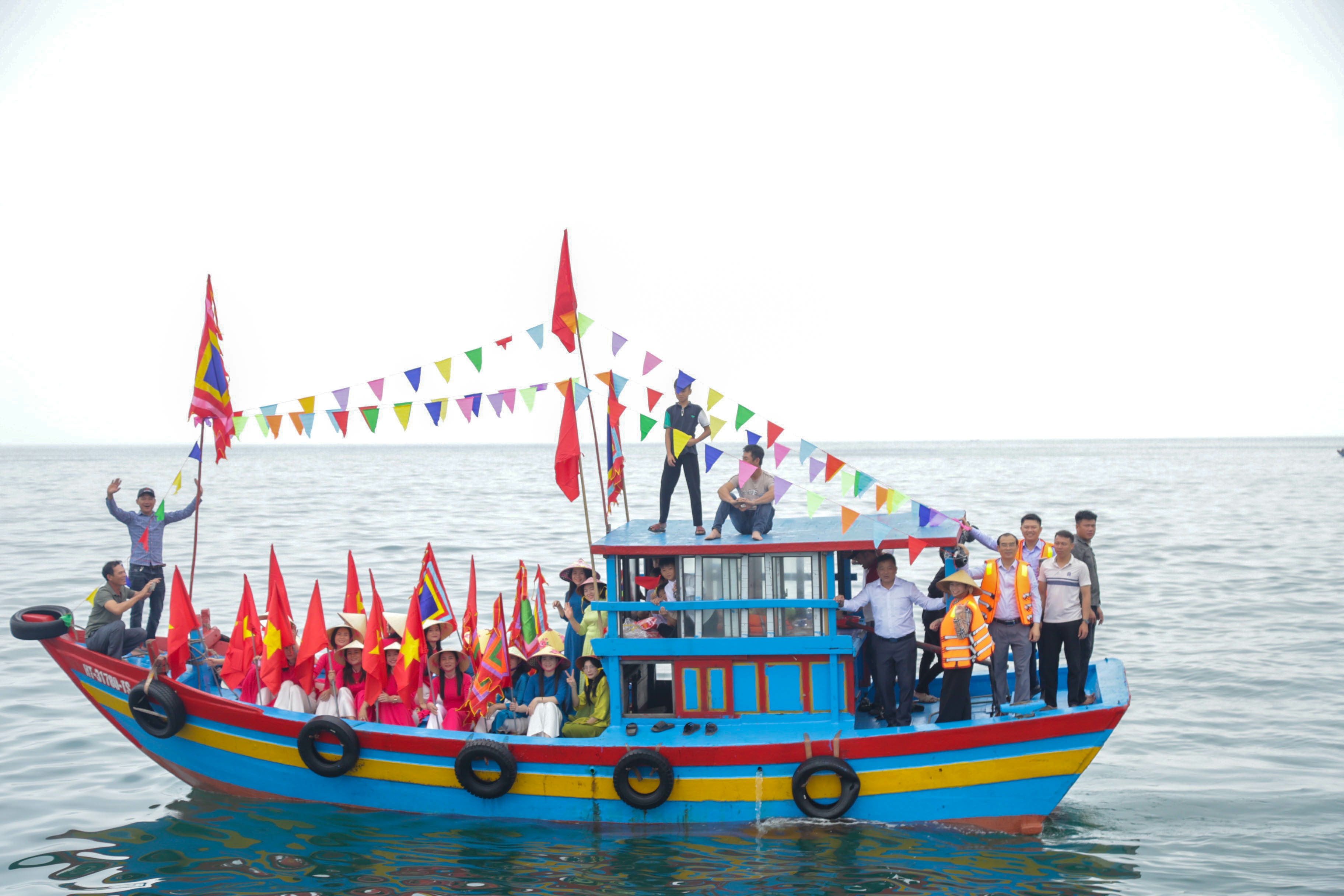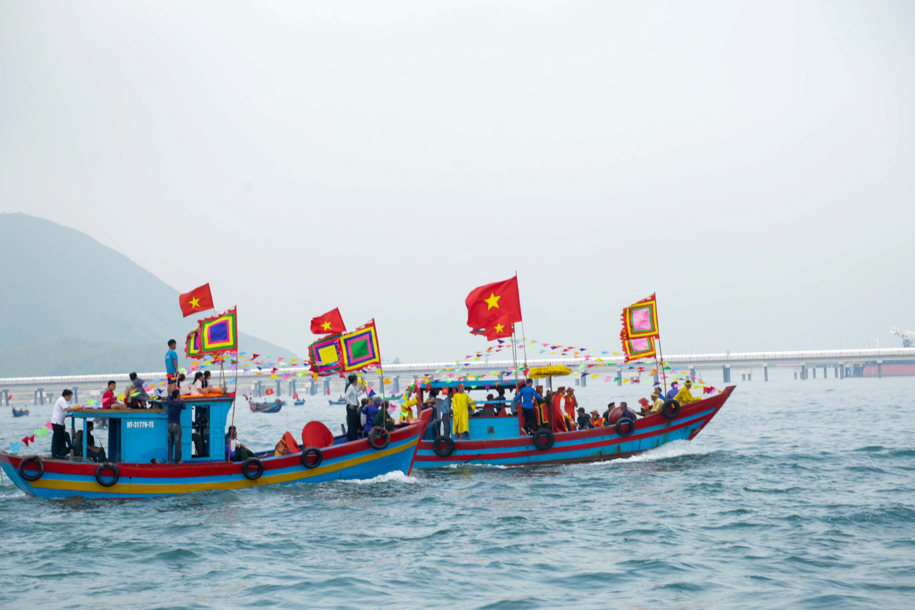 Trong không gian linh thiêng nơi cửa biển, giữa tiếng chiêng, tiếng trống, cờ hội rực rỡ và làn khói hương trầm lan tỏa, đoàn rước Thánh diễn ra trang trọng, tạo nên nét đẹp văn hóa tâm linh giàu bản sắc của quê hương Vũng Áng.