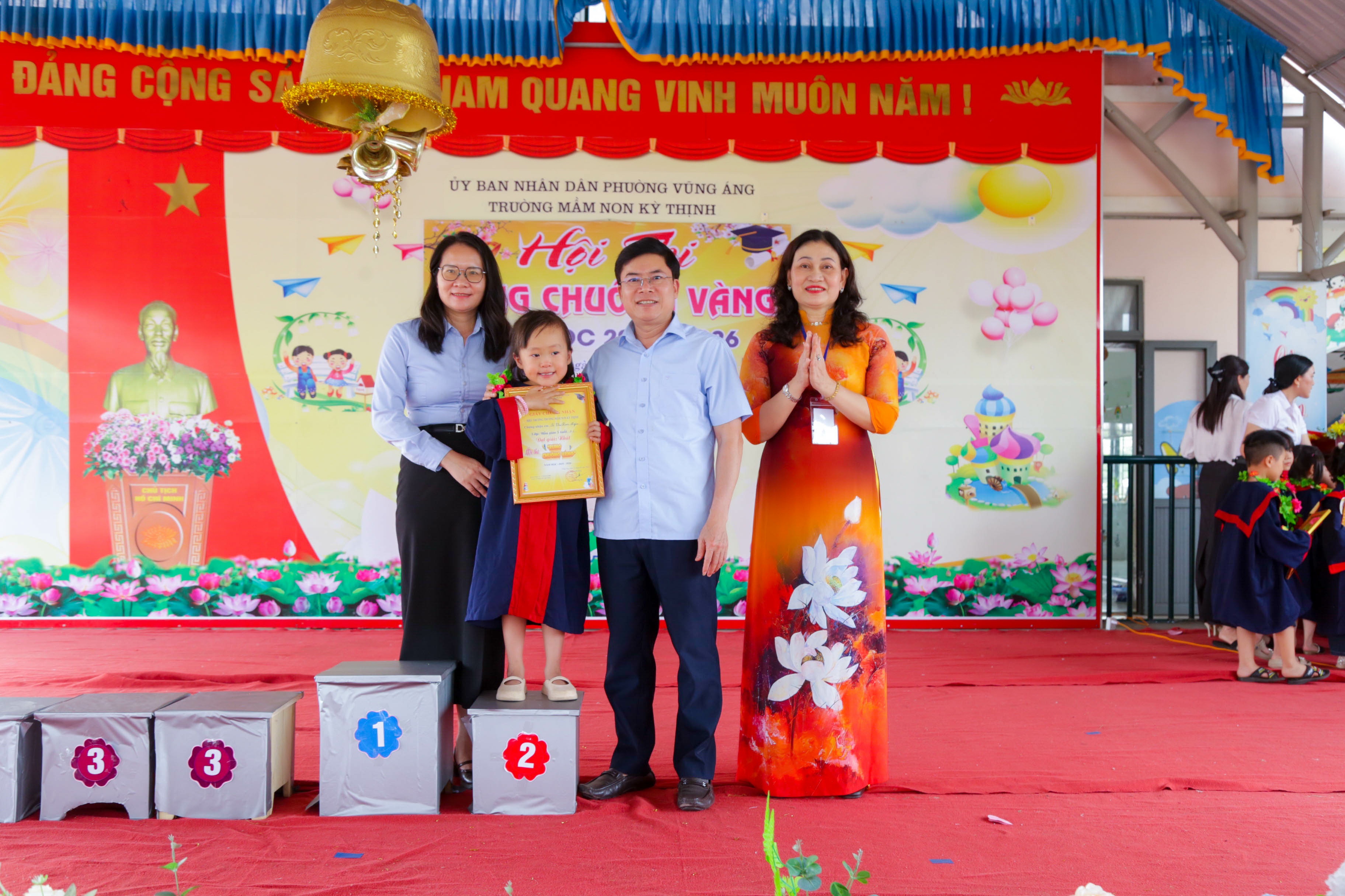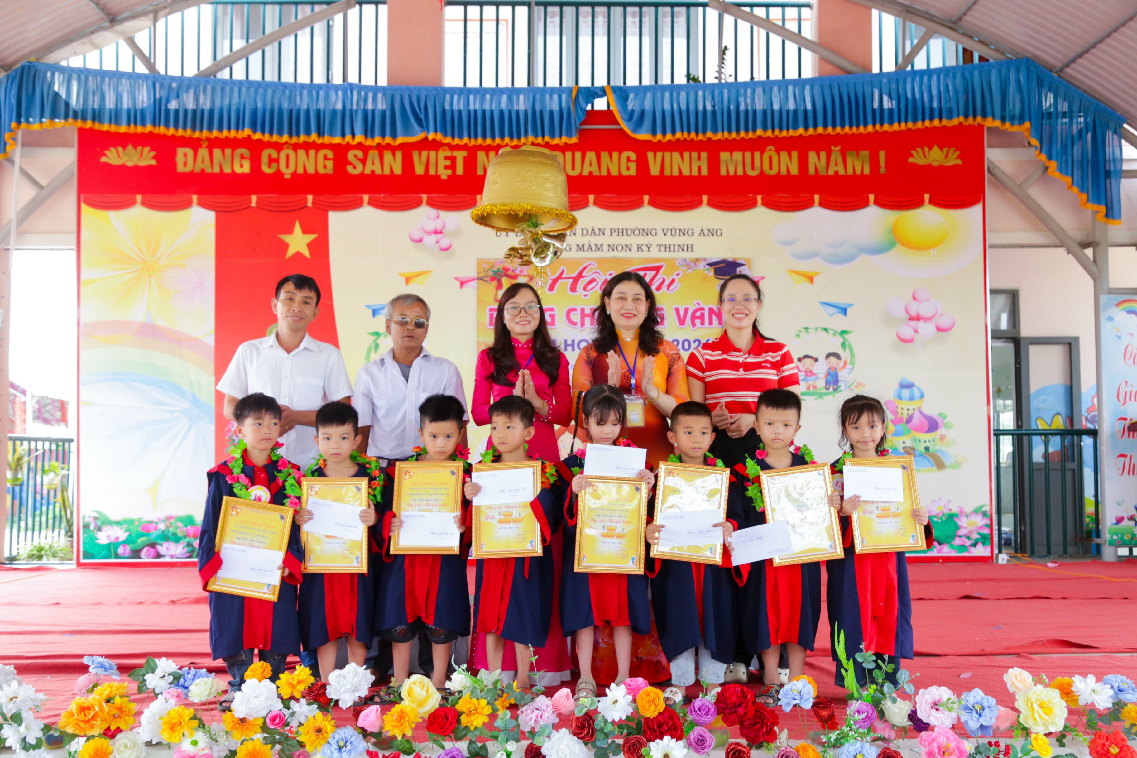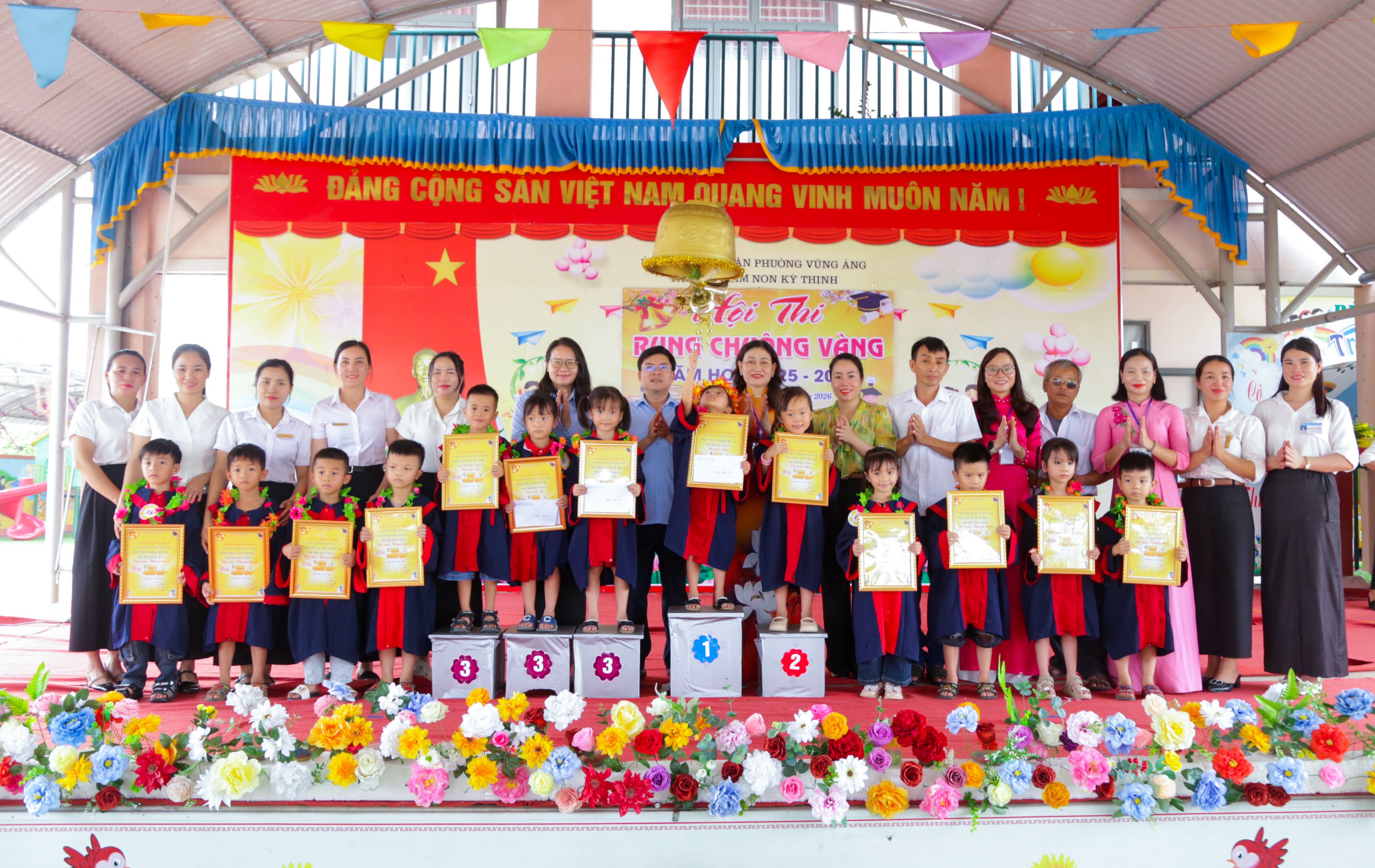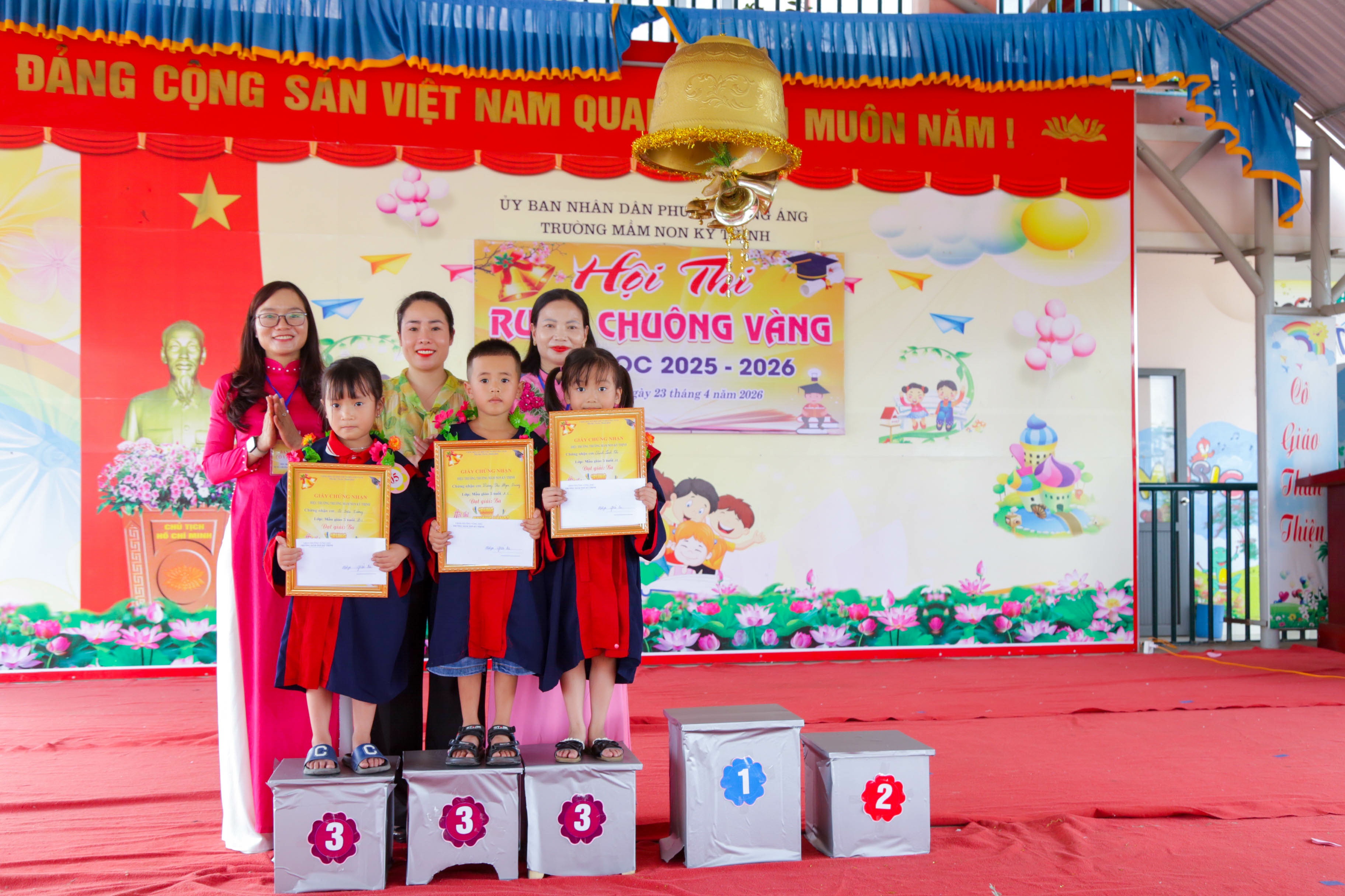 Hội thi “Rung chuông vàng” đã khép lại trong không khí vui tươi, phấn khởi, để lại nhiều ấn tượng sâu sắc trong lòng các em học sinh, phụ huynh và cán bộ, giáo viên nhà trường; không chỉ là sân chơi lành mạnh, bổ ích, làm phong phú thêm các hoạt động giáo dục trải nghiệm, hoạt động ngoài giờ lên lớp mà còn là diễn đàn để các em được giao lưu, học hỏi, trau dồi kiến thức, kỹ năng sống, phát huy tính tích cực, chủ động và sáng tạo trong học tập cũng như trong các hoạt động tập thể; qua đó góp phần đánh giá hiệu quả công tác nuôi dưỡng, chăm sóc, giáo dục trẻ của nhà trường, đồng thời phát hiện những học sinh có kiến thức toàn diện, tạo nền tảng vững chắc để các em tự tin bước vào lớp 1 trong thời gian tới.