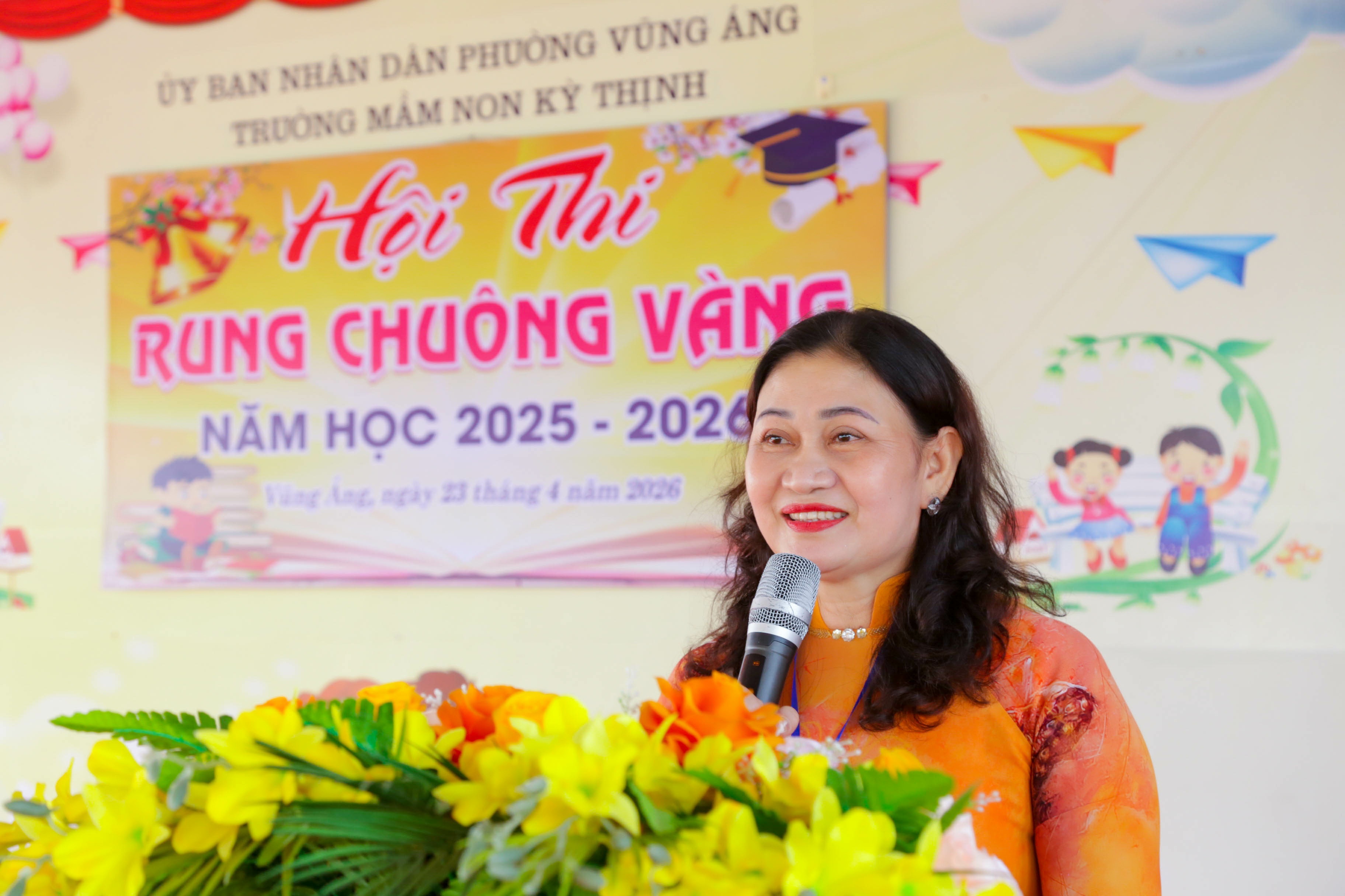 Tham dự chương trình có đồng chí Nguyễn Văn Giáp – Ủy viên Ban Thường vụ, Phó Chủ tịch Thường trực UBND phường Vũng Áng; lãnh đạo và chuyên viên Phòng Văn hóa – Xã hội phường; Ban Giám hiệu nhà trường, các cô giáo cùng đông đảo phụ huynh học sinh. Đặc biệt, hội thi có sự góp mặt của 80 em học sinh khối 5 tuổi đến từ các điểm trường, là những gương mặt tiêu biểu, xuất sắc được lựa chọn vào vòng chung kết.