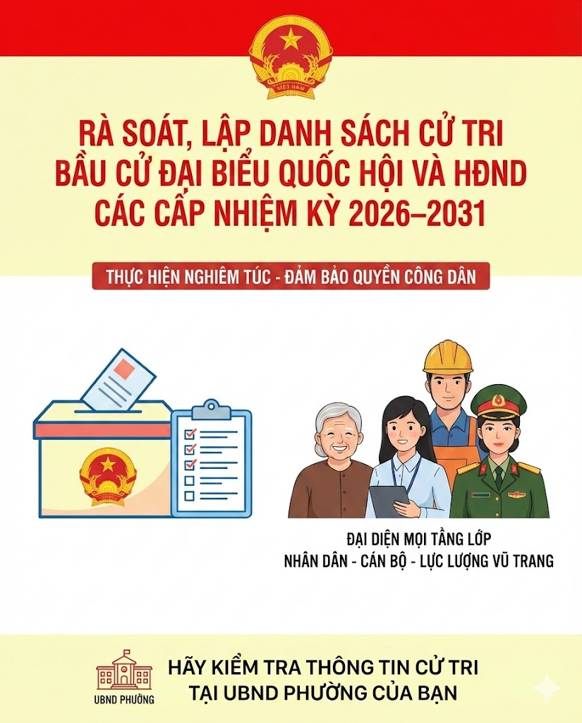 Danh sách cử tri (theo mẫu) đề nghị các cơ quan, đơn vị gửi về UBND phường Vũng Áng (qua phòng Văn hóa – Xã hội) trước ngày 25/01/2026 để tổng hợp, báo cáo theo quy định.